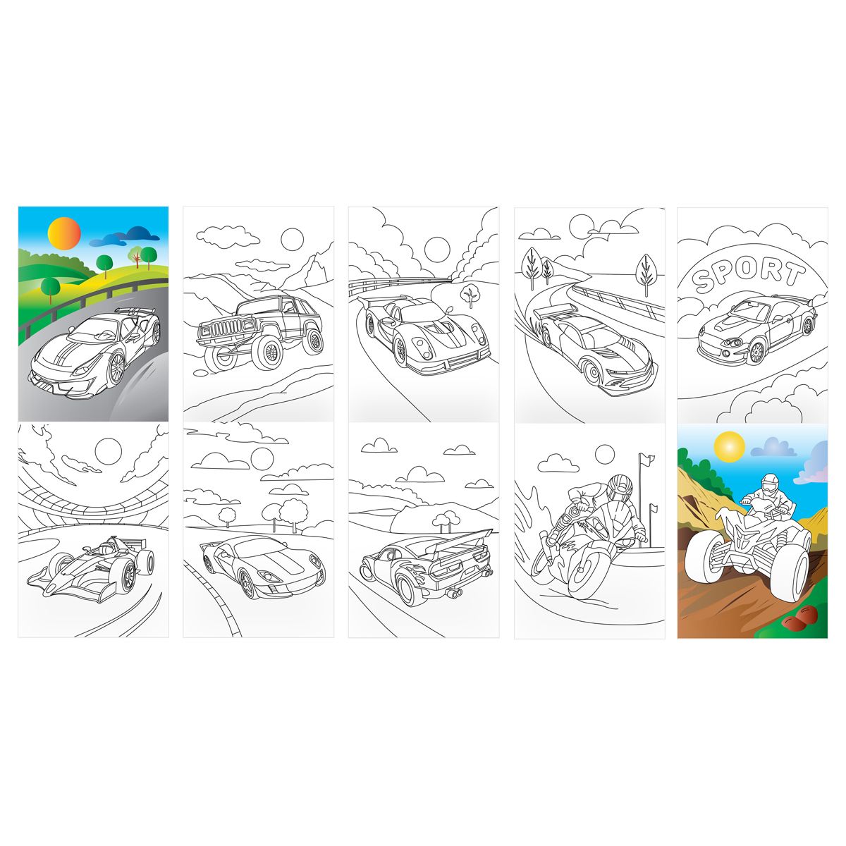Раскраска А5, 10 стр. ТРИ СОВЫ "Автомобили", горизонтальные