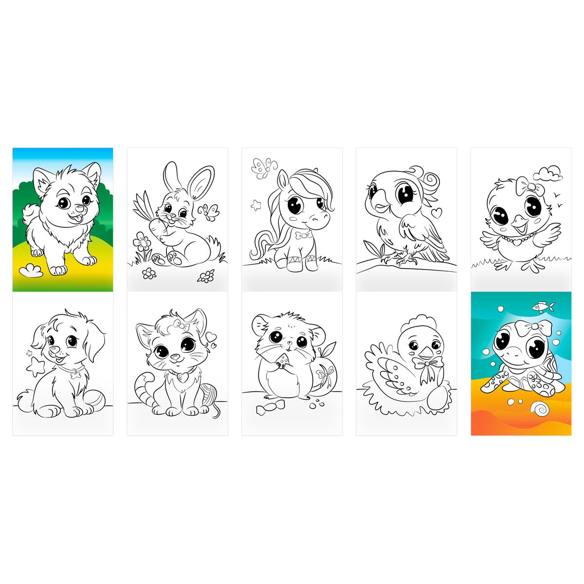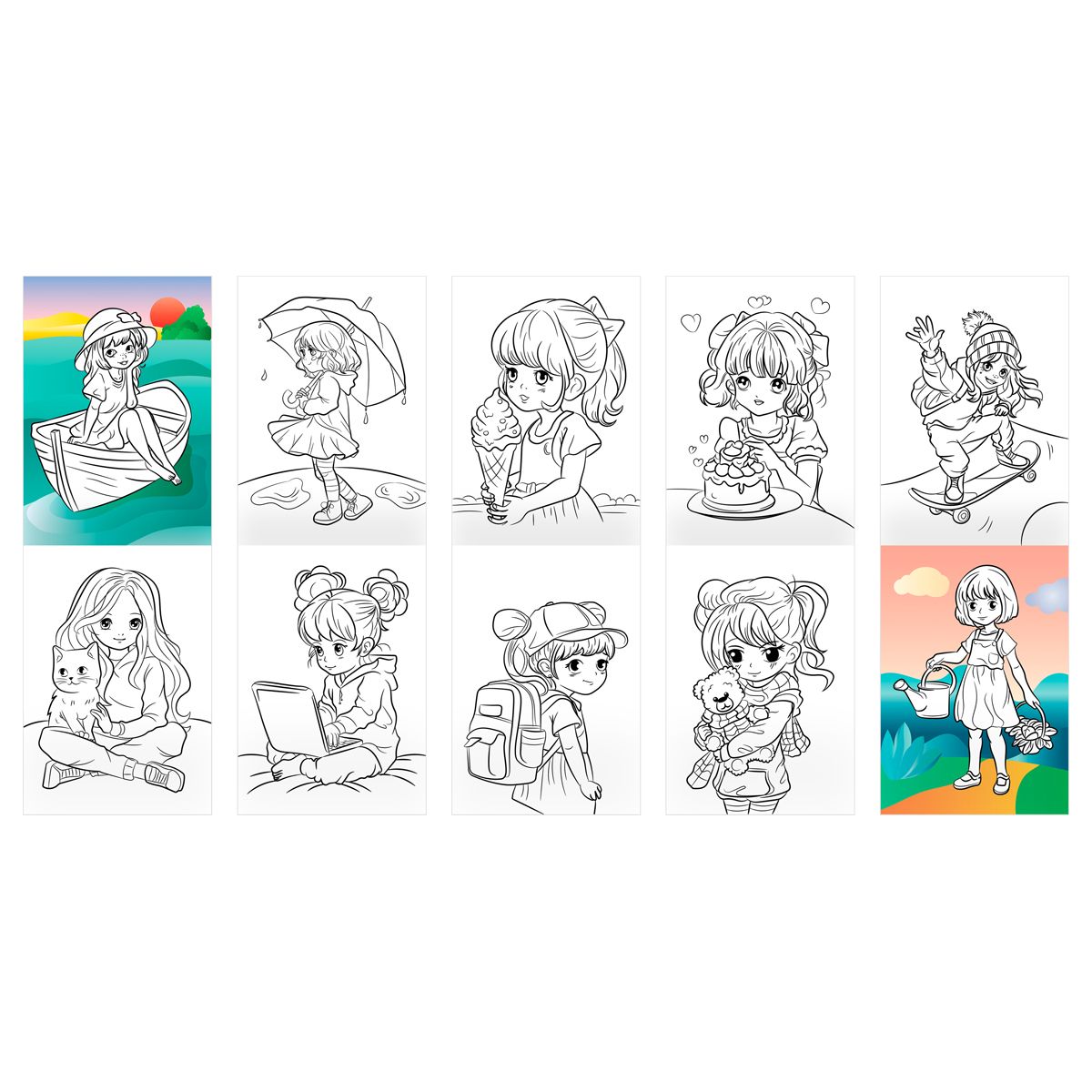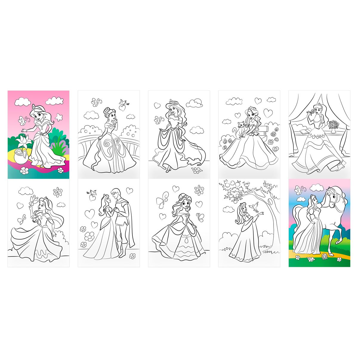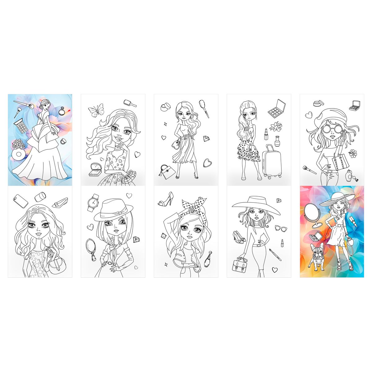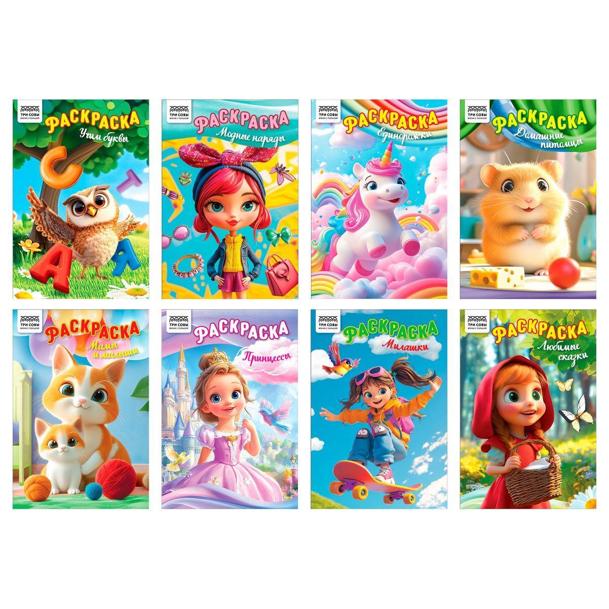 При раскрашивании ребёнок развивает мелкую моторику и цветовосприятие, фантазию и воображение. Раскраски помогают сформировать такие качества, как усидчивость и аккуратность. В запаянной упаковке находятся восемь разных раскрасок для девочек: «Учим буквы», «Модные наряды», «Единорожки», «Домашние питомцы», «Мамы и малыши», «Принцессы», «Милашки» и «Любимые сказки».