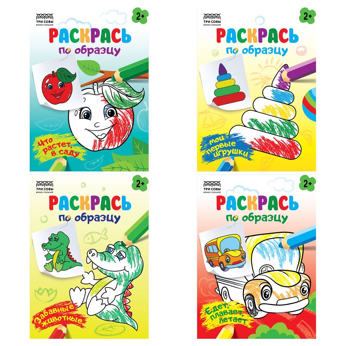 Раскраска А5, 8 стр., ТРИ СОВЫ "Раскрась по образцу. Выпуск 2",