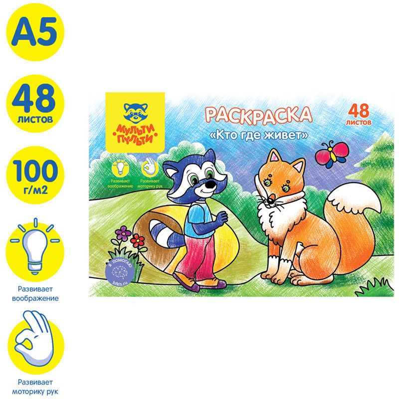 Раскраска А5 Мульти-Пульти "Кто где живет", 48л., в папке