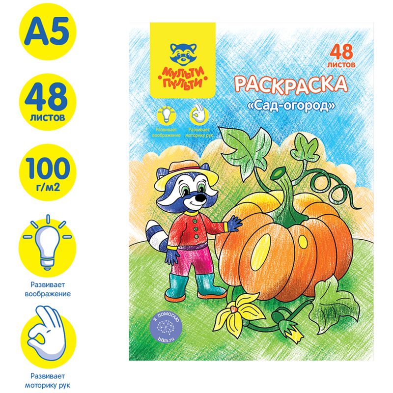 Раскраска А5 Мульти-Пульти "Сад-огород", 48л., в папке
