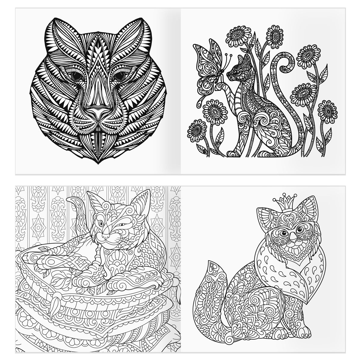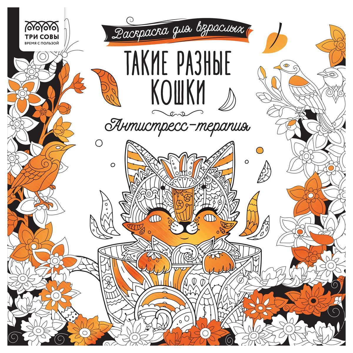 Раскраска для взрослых 228*228, 64 стр., ТРИ СОВЫ "Антистресс-терапия. Такие разные кошки", склейка