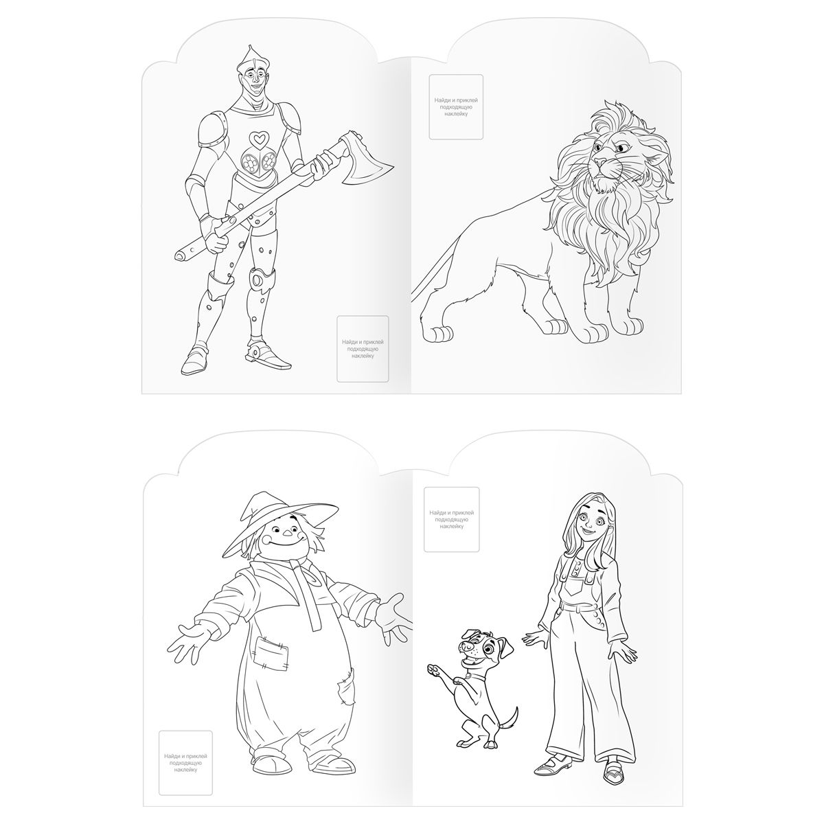 Раскраска фигурная с наклейками А4, 16 стр., ТРИ СОВЫ "Волшебник Изумрудного города"
