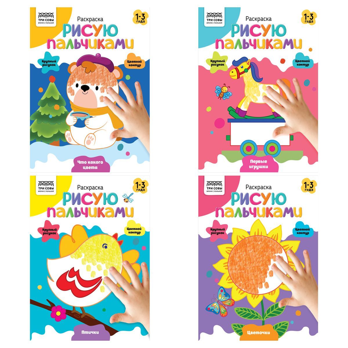 Раскраска пальчиковая с цв. фоном А5, 8 стр., ТРИ СОВЫ "Рисую пальчиками. Выпуск 1"