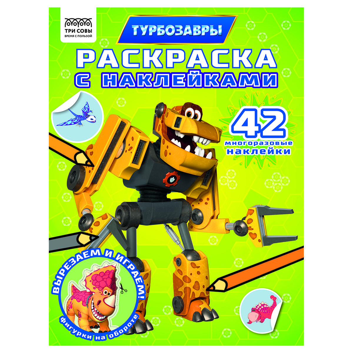 Раскраска с наклейками А4, 8стр., ТРИ СОВЫ "Турбозавры"
