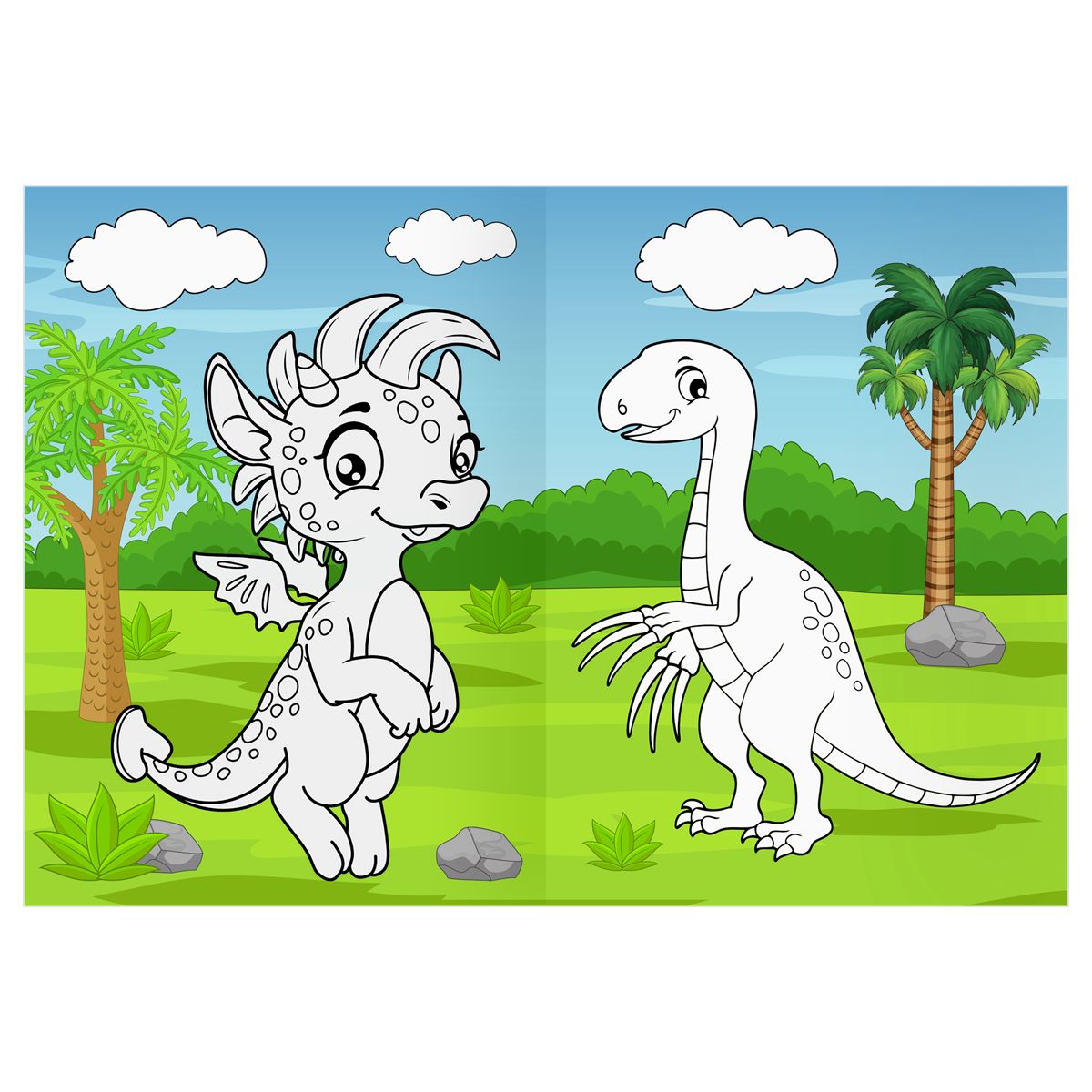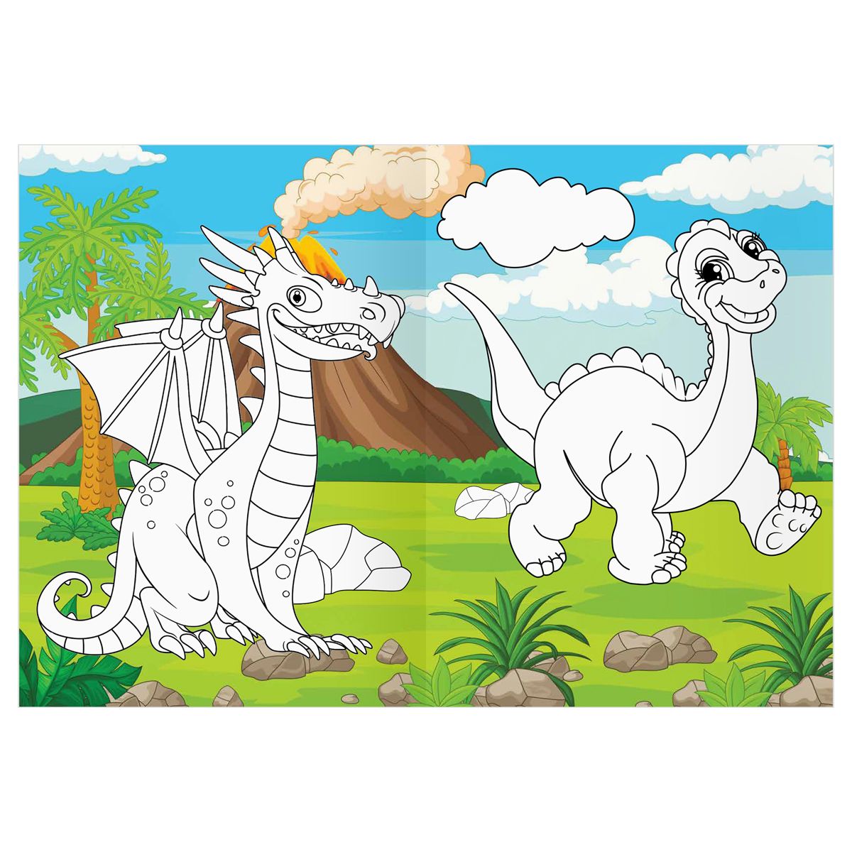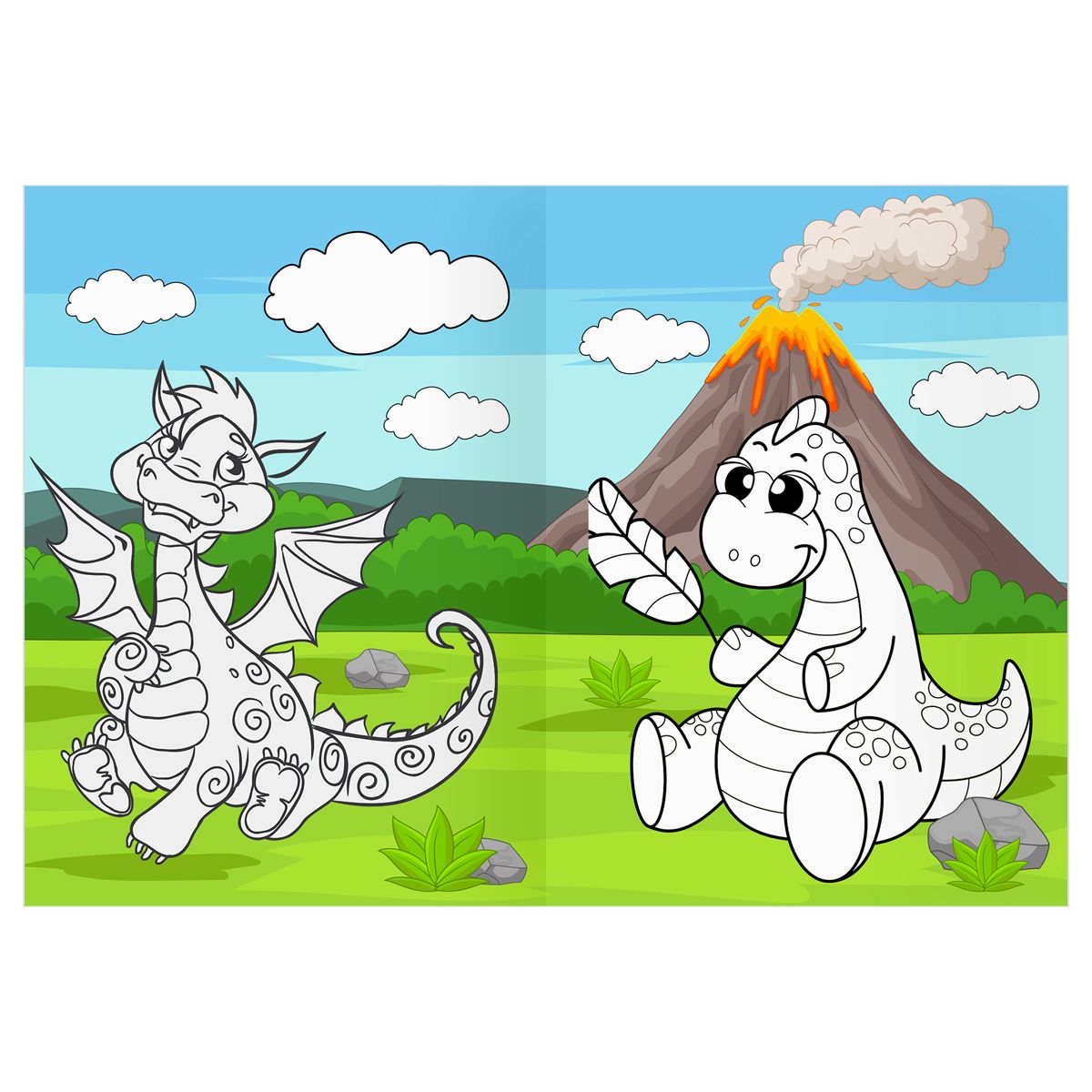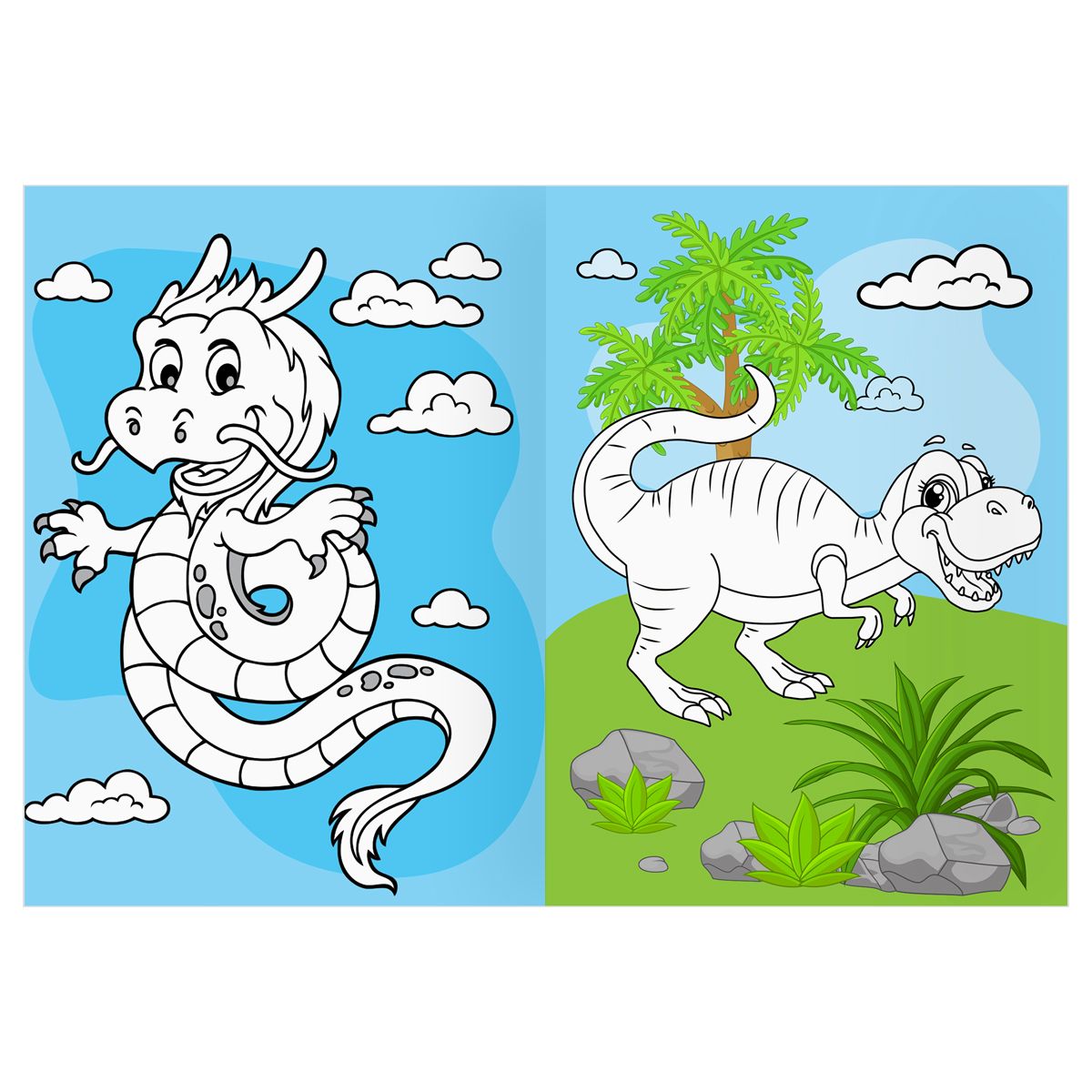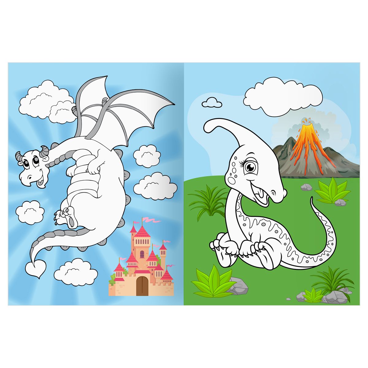 Раскраска с цв. фоном А4, 16 стр., ТРИ СОВЫ "Динозавры и драконы"