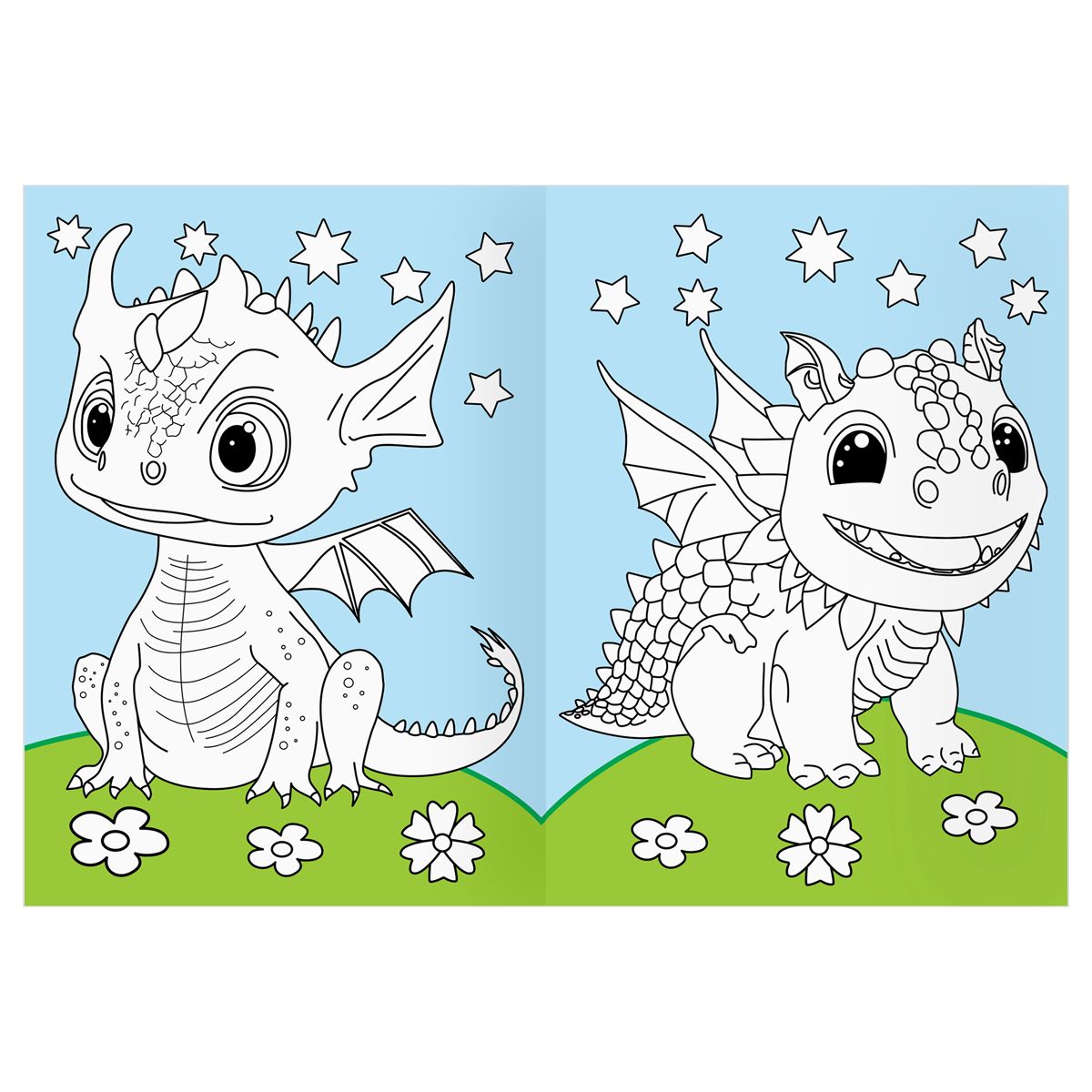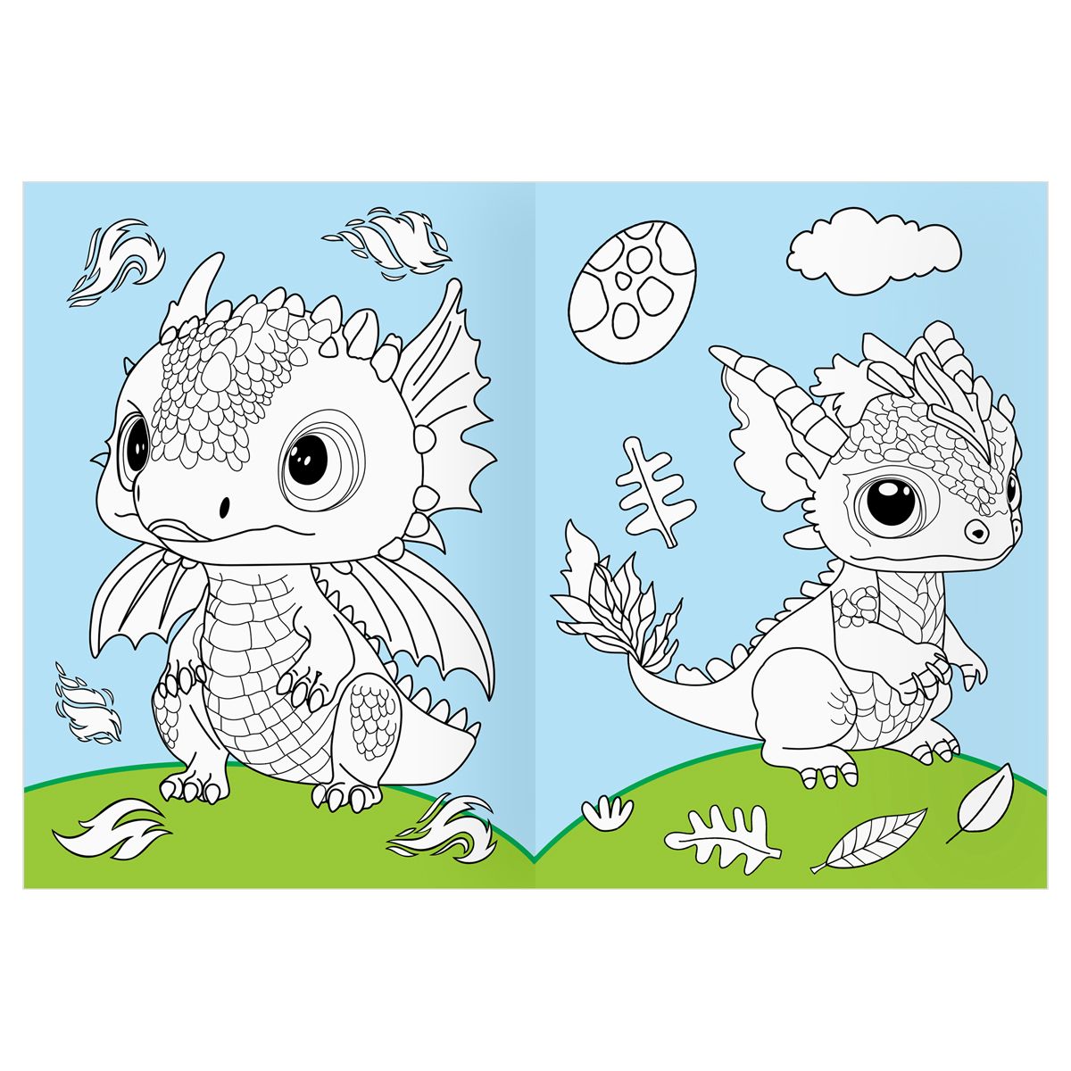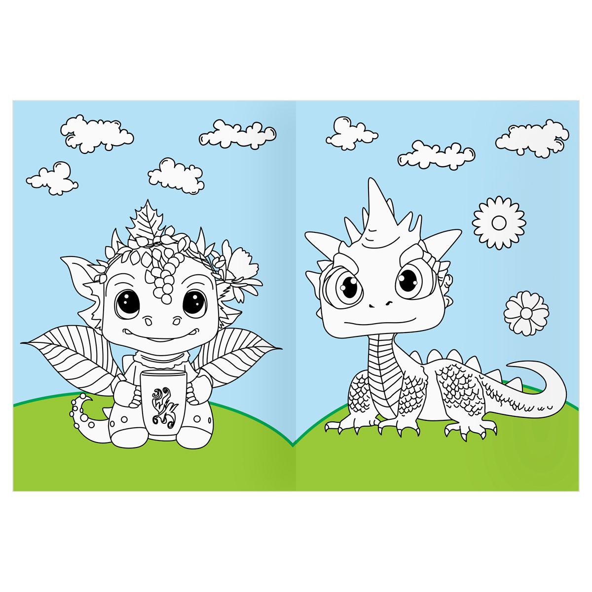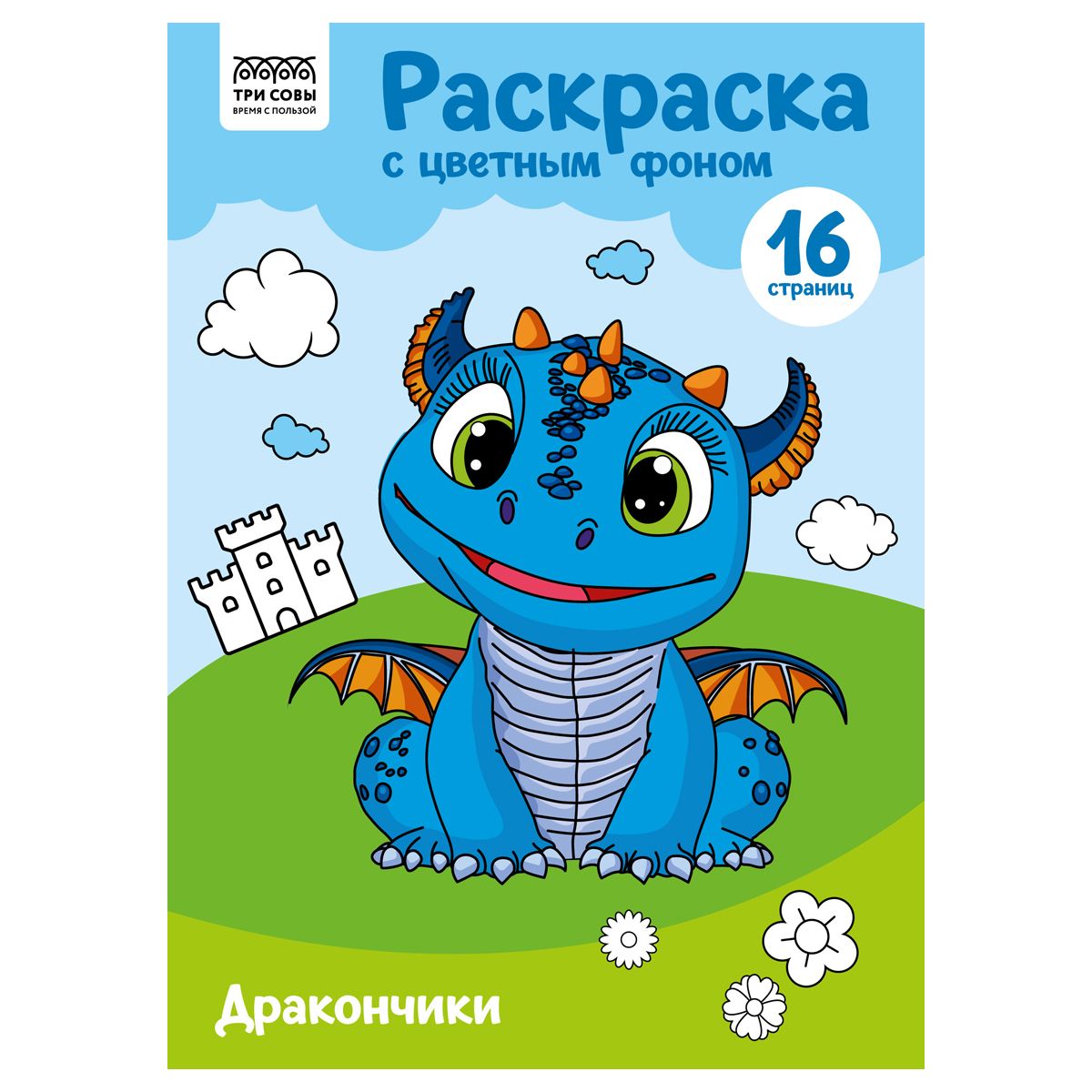 Раскраска с цв. фоном А4, 16 стр., ТРИ СОВЫ "Дракончики"