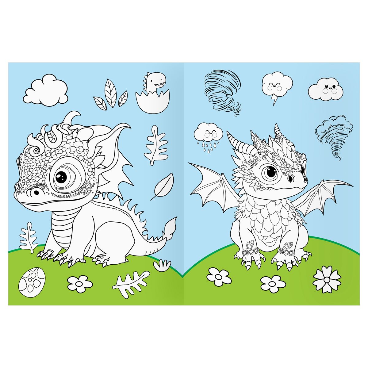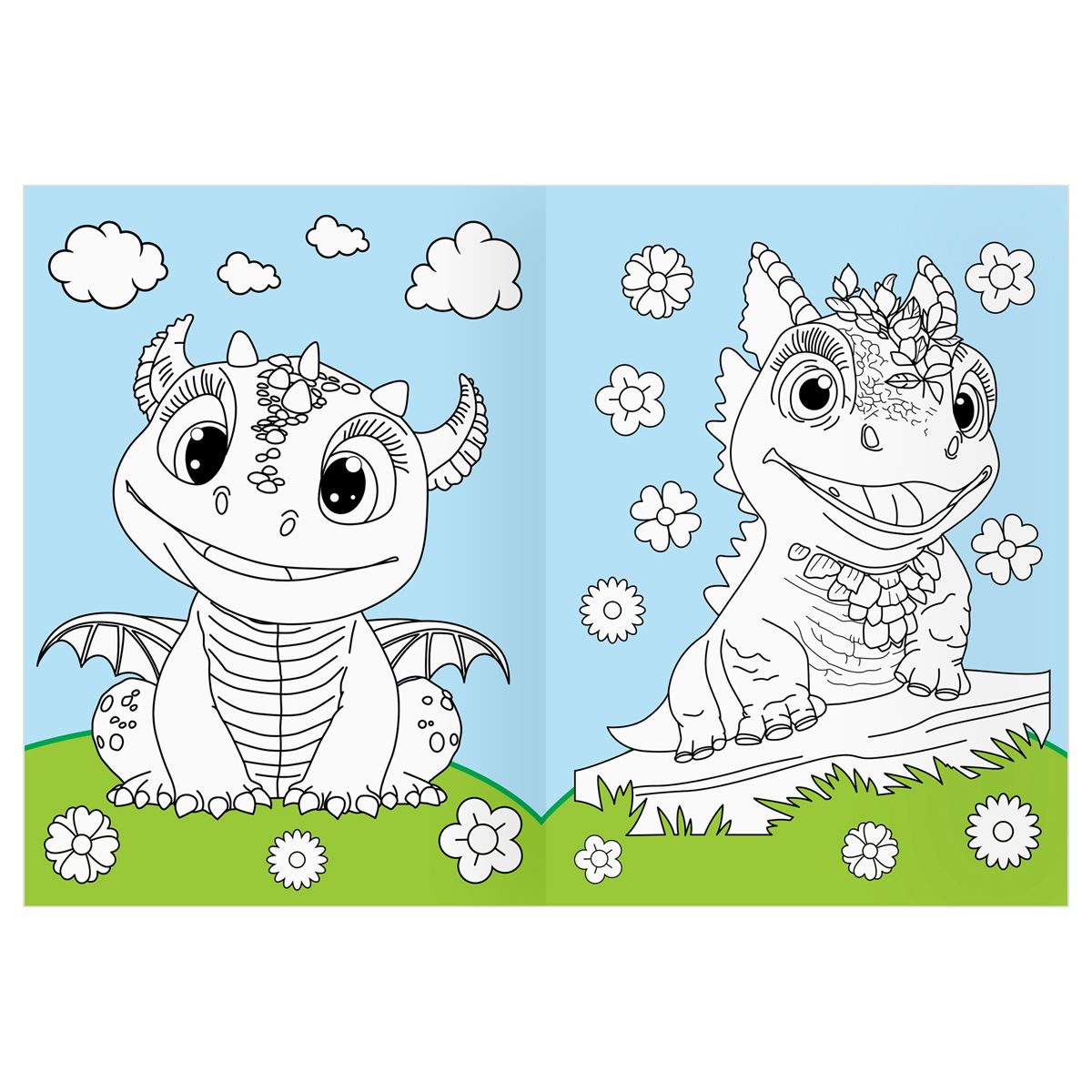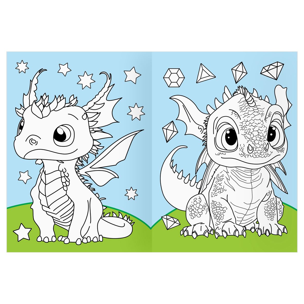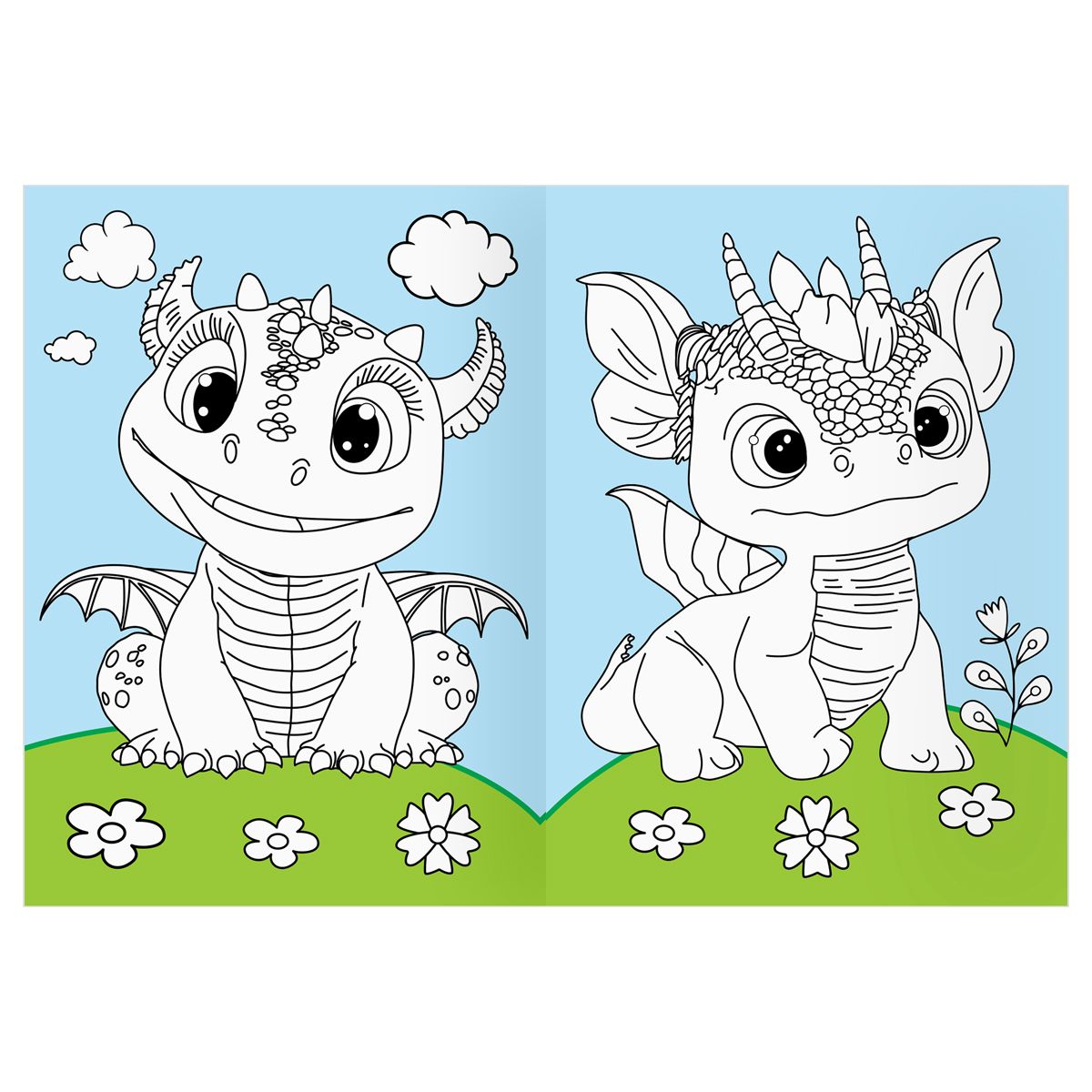 Раскраска с цв. фоном А4, 16 стр., ТРИ СОВЫ "Дракончики"