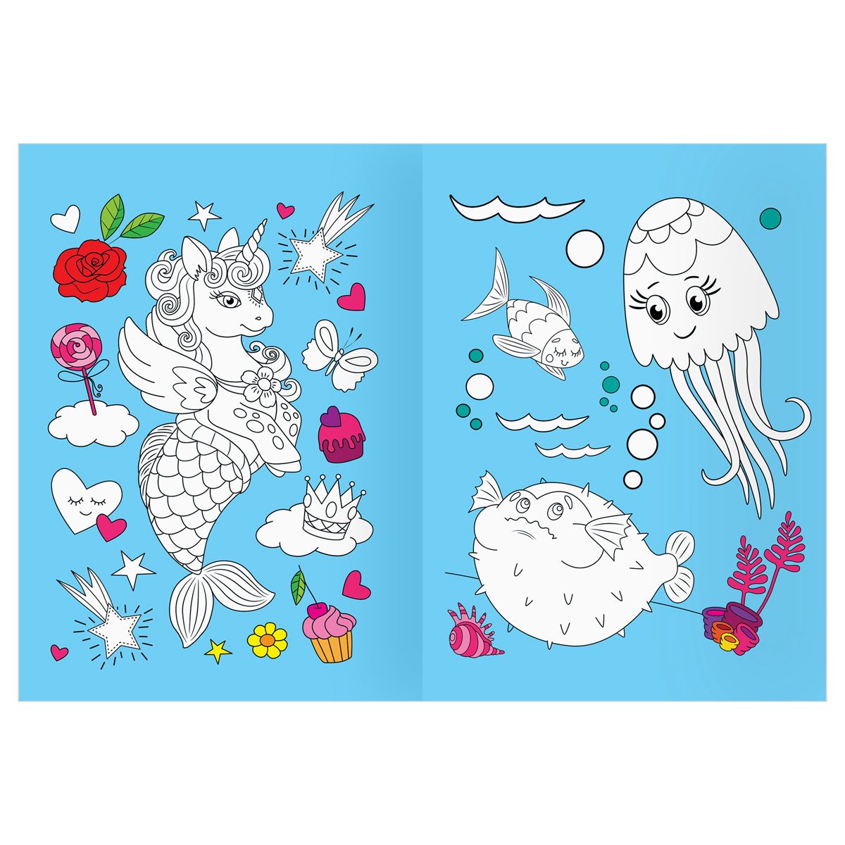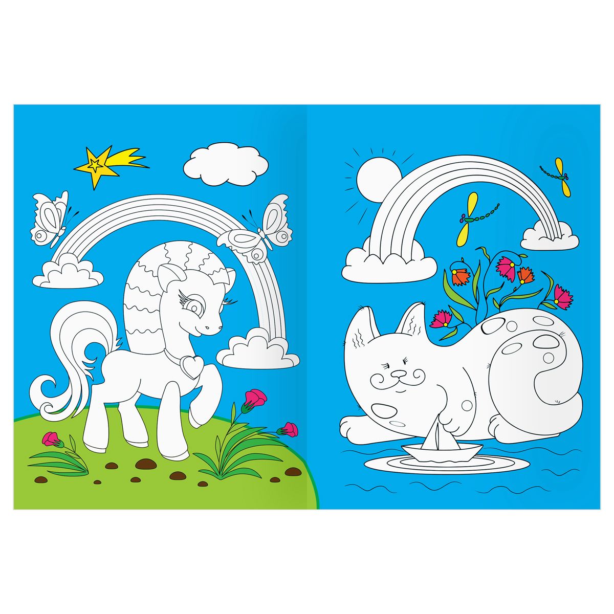 Раскраска с цв. фоном А4, 16 стр., ТРИ СОВЫ "Страна единорожек"