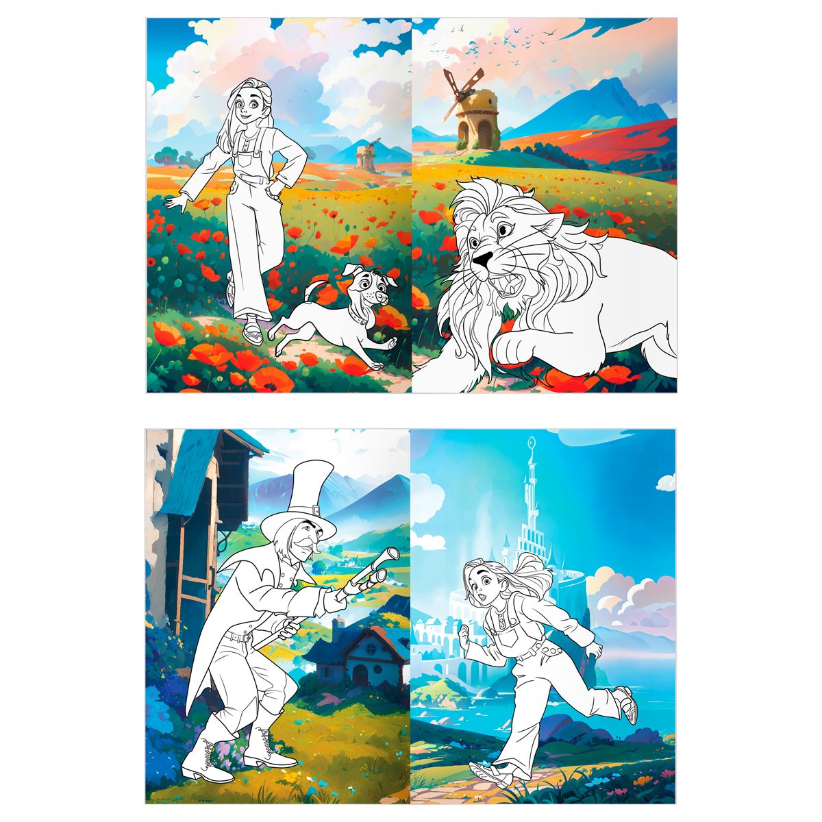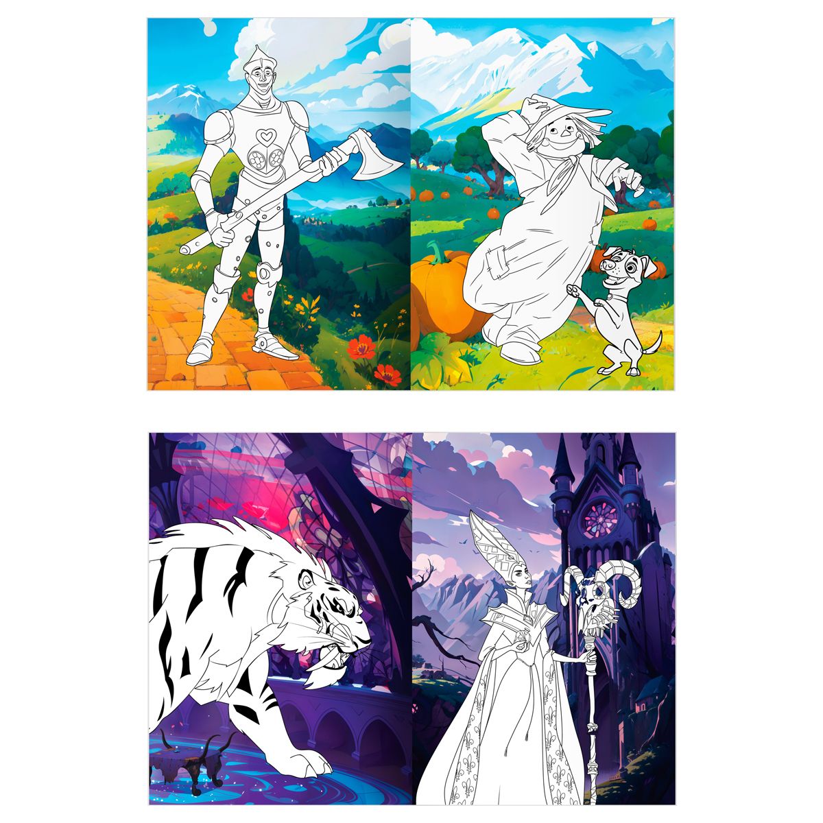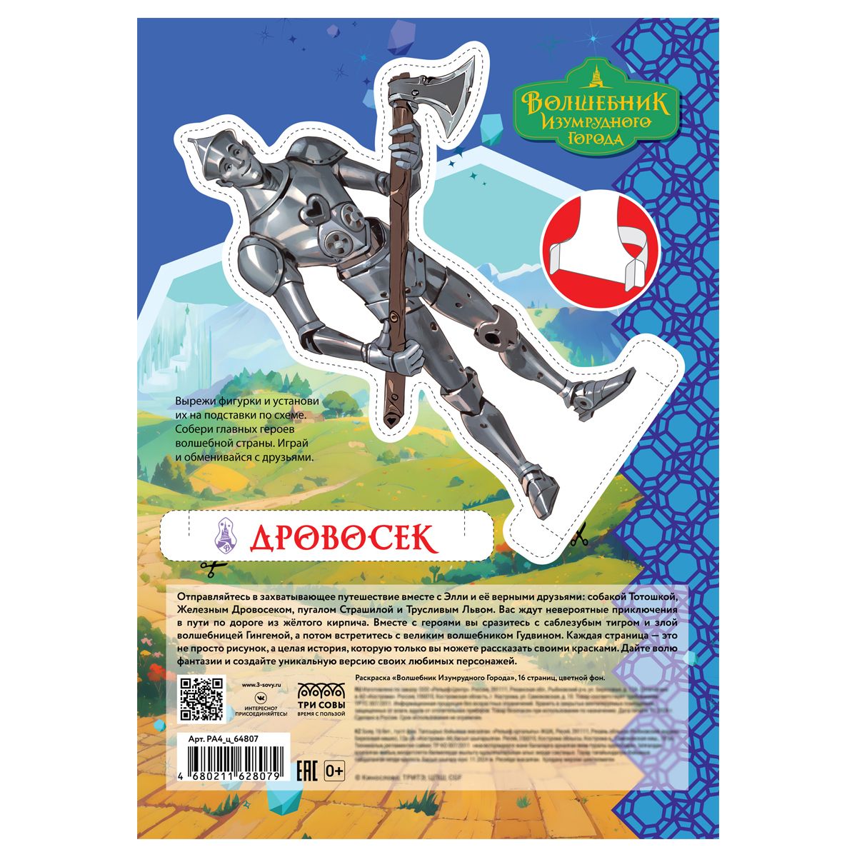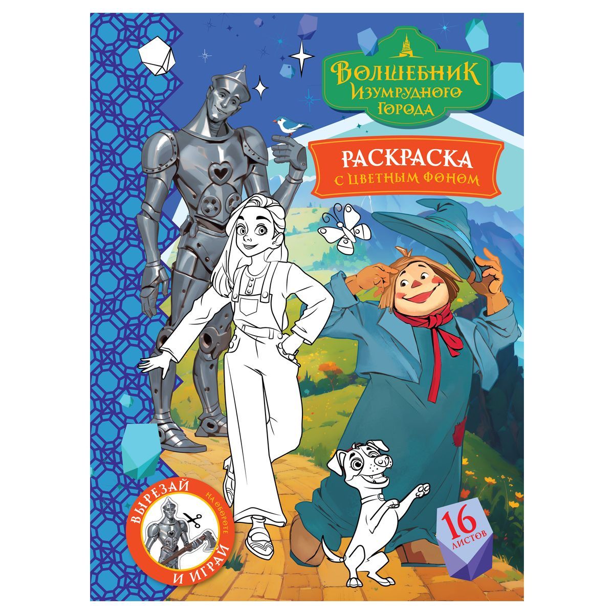 Раскраска с цв. фоном А4, 16 стр., ТРИ СОВЫ "Волшебник Изумрудного города"
