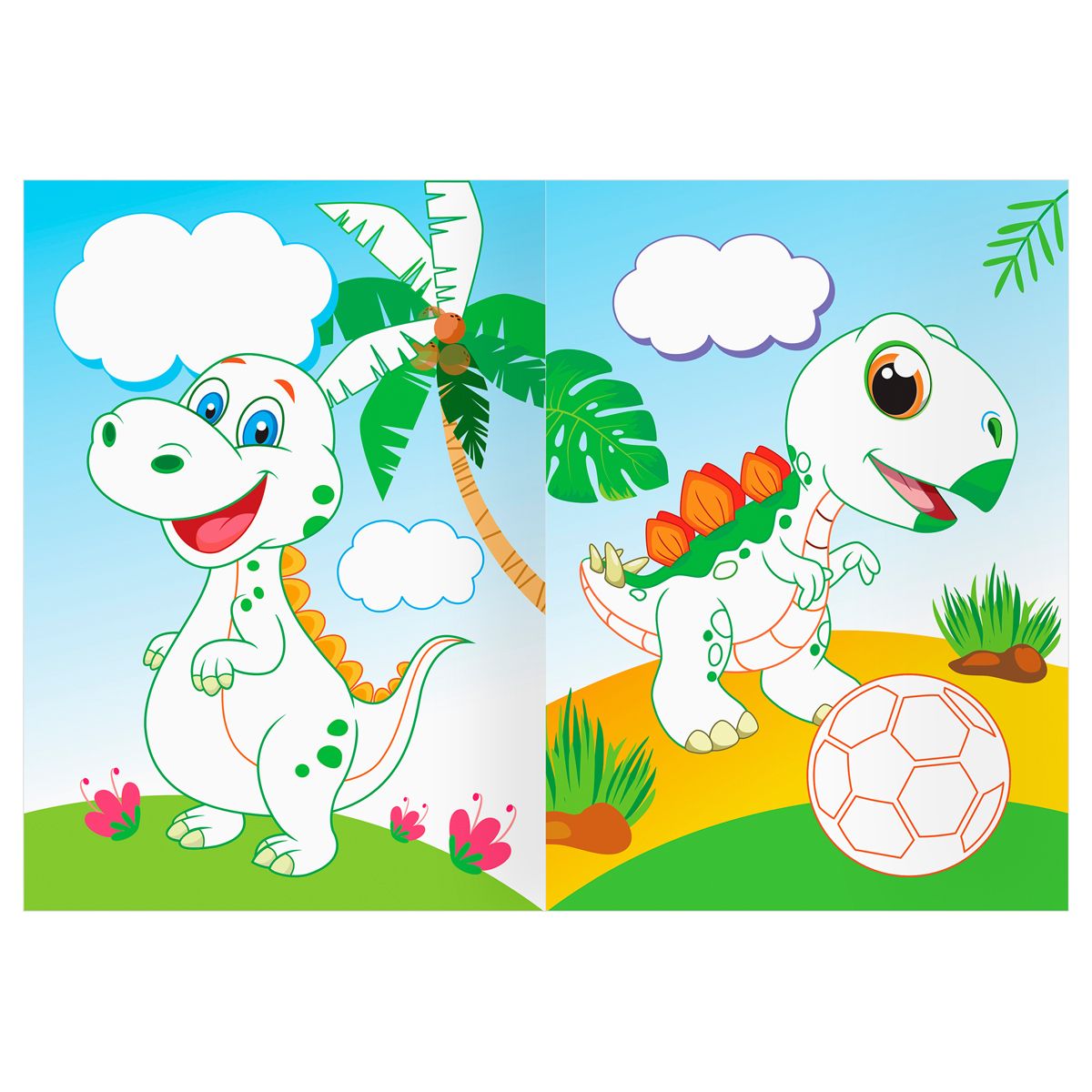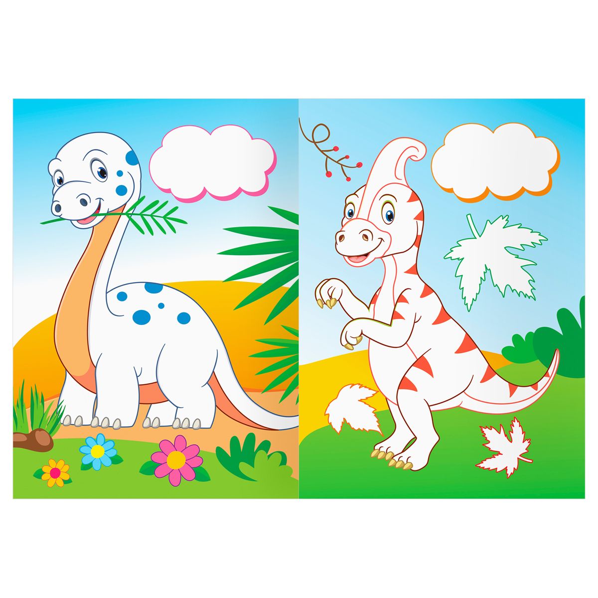 Раскраска с цв. фоном А5, 8 стр., ТРИ СОВЫ "Забавные динозаврики"