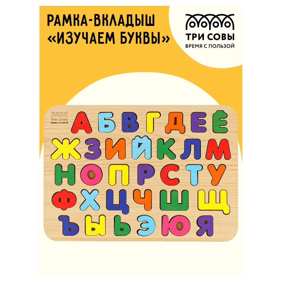 Обучающая игра ТРИ СОВЫ Рамка-вкладыш "Изучаем буквы", русский алфавит, дерево, яркие цвета