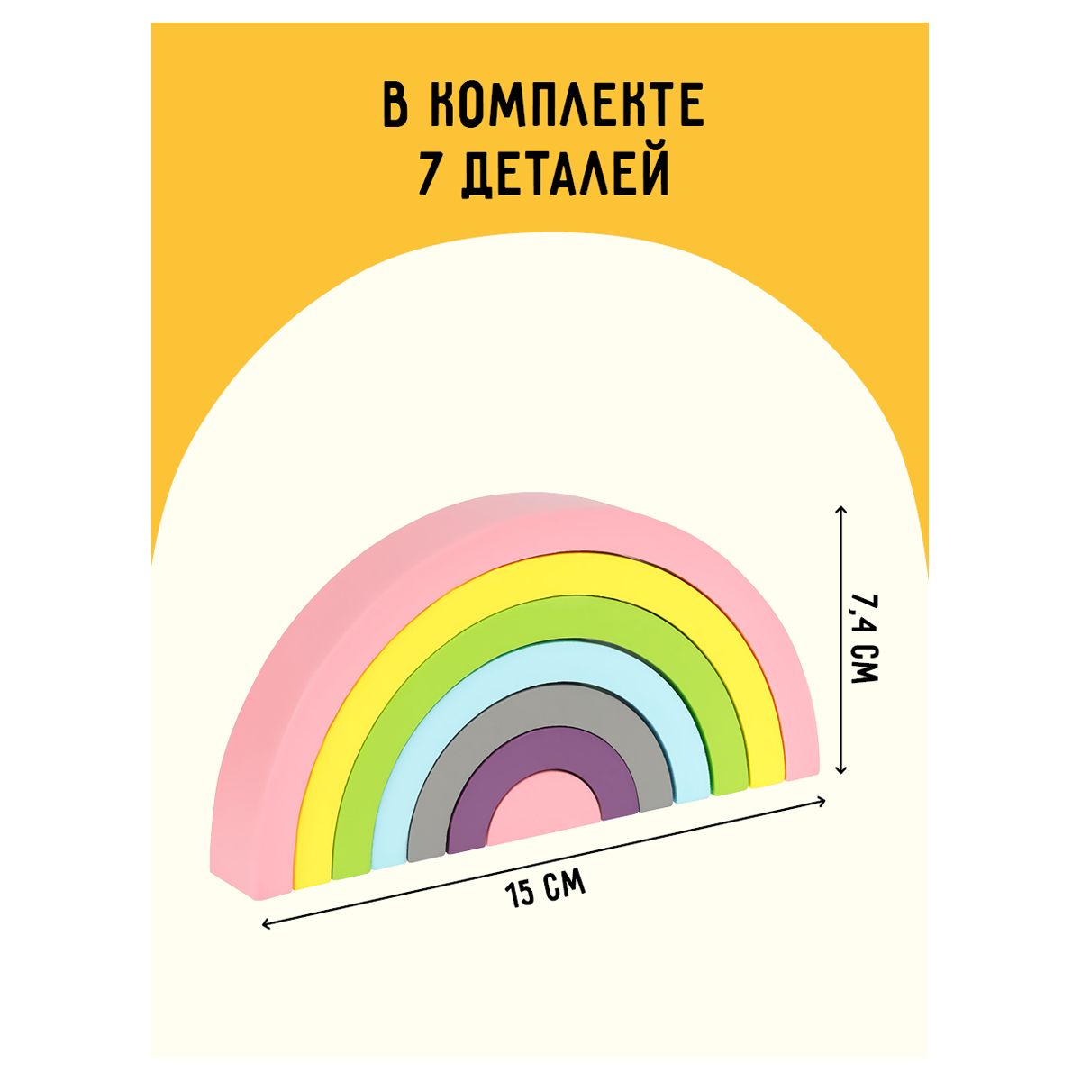 Развивающая игрушка ТРИ СОВЫ Пирамидка "Радуга-дуга", дерево, 7 деталей, пастельные цвета