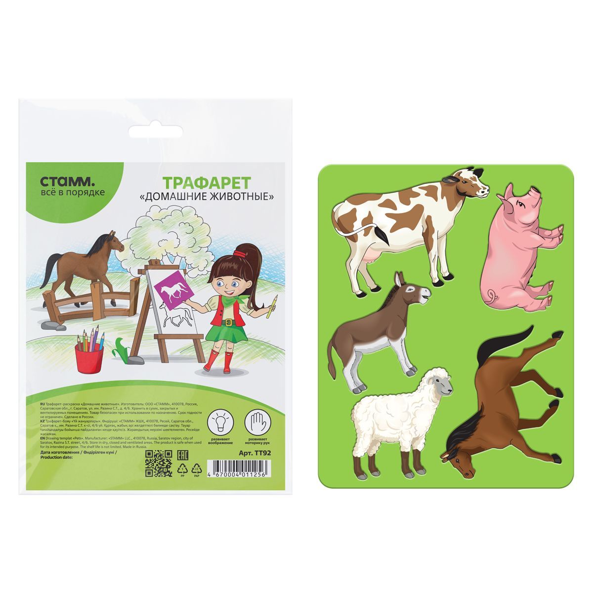 Трафарет-раскраска контурный, СТАММ "Домашние животные", пакет, европодвес