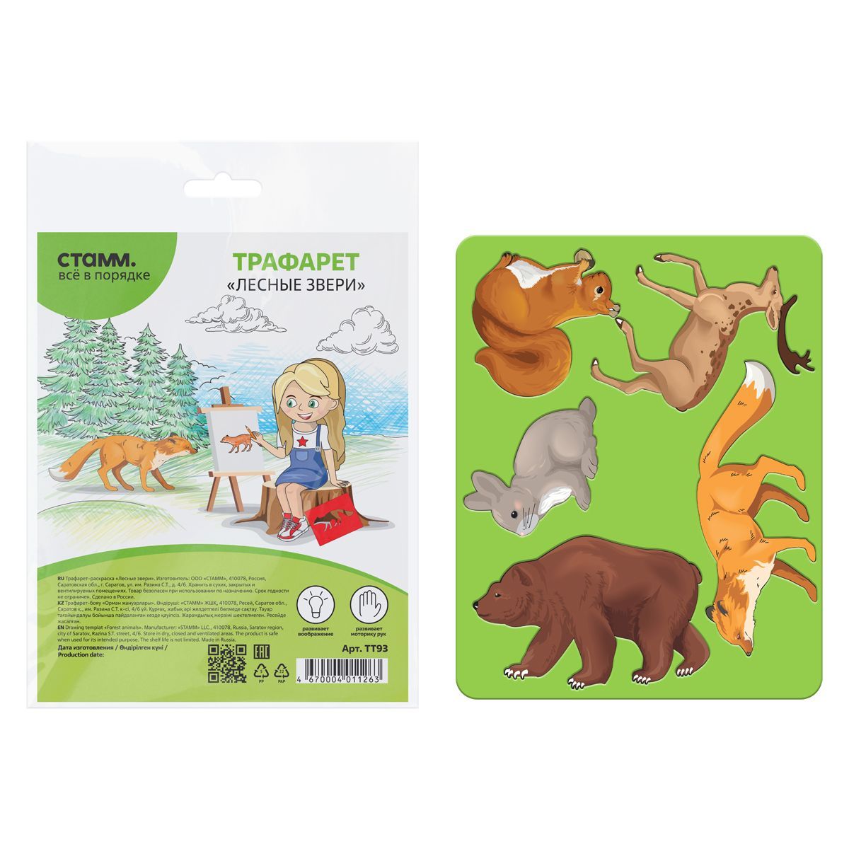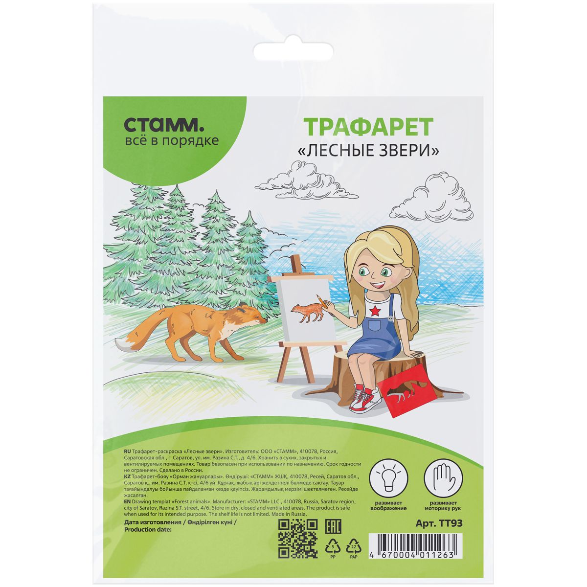 Трафарет-раскраска контурный, СТАММ "Лесные звери", пакет, европодвес
