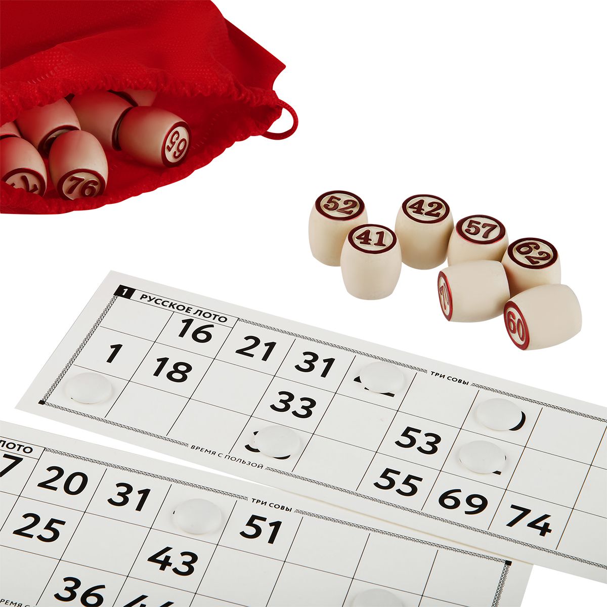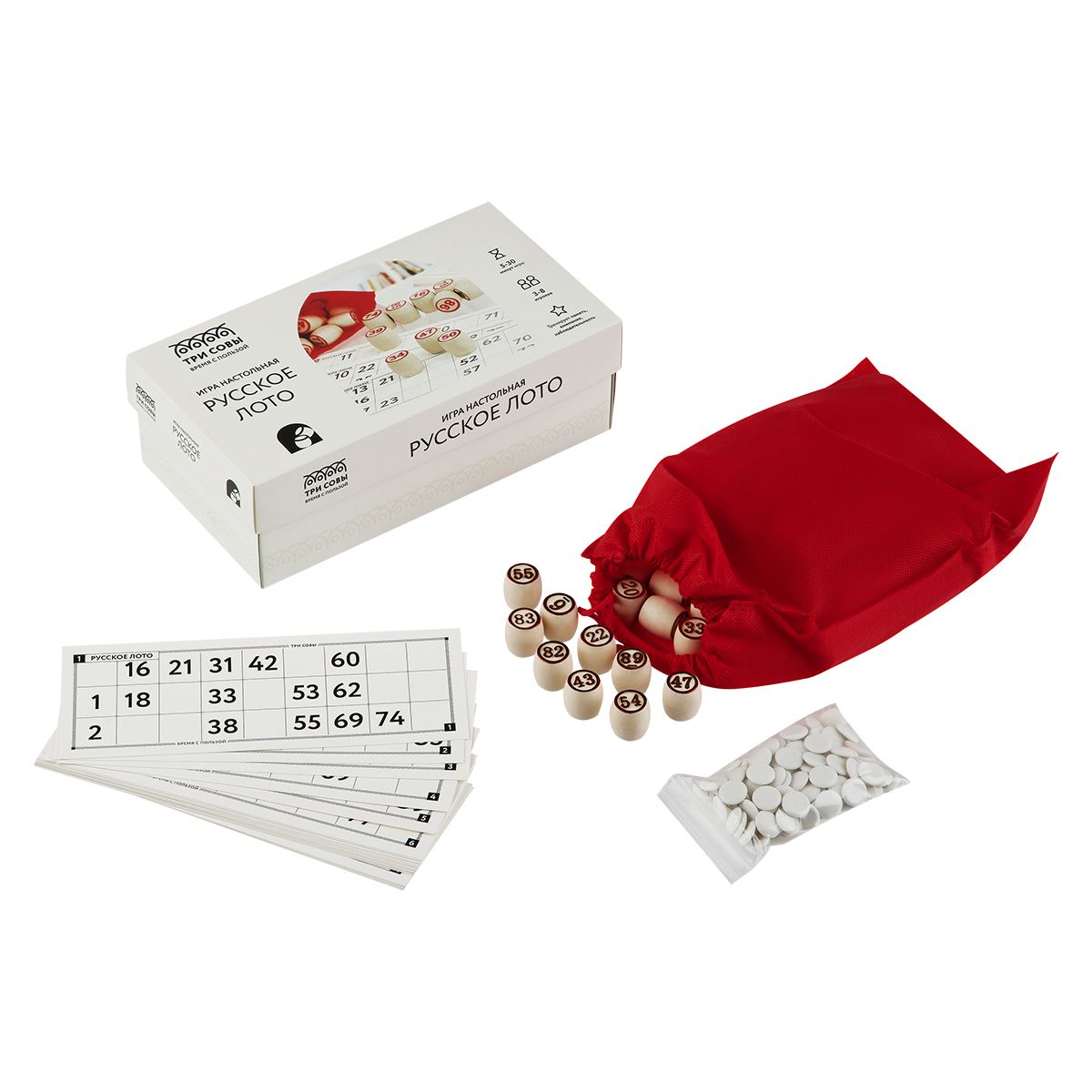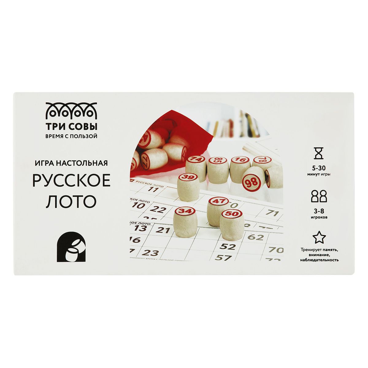 Игра настольная ТРИ СОВЫ "Русское лото", с бочонками, картонная коробка