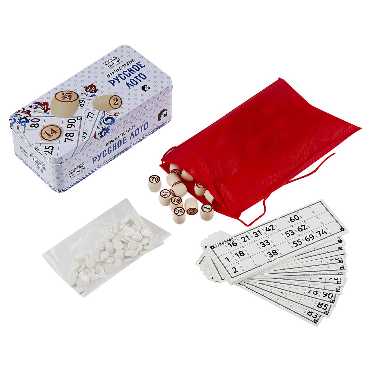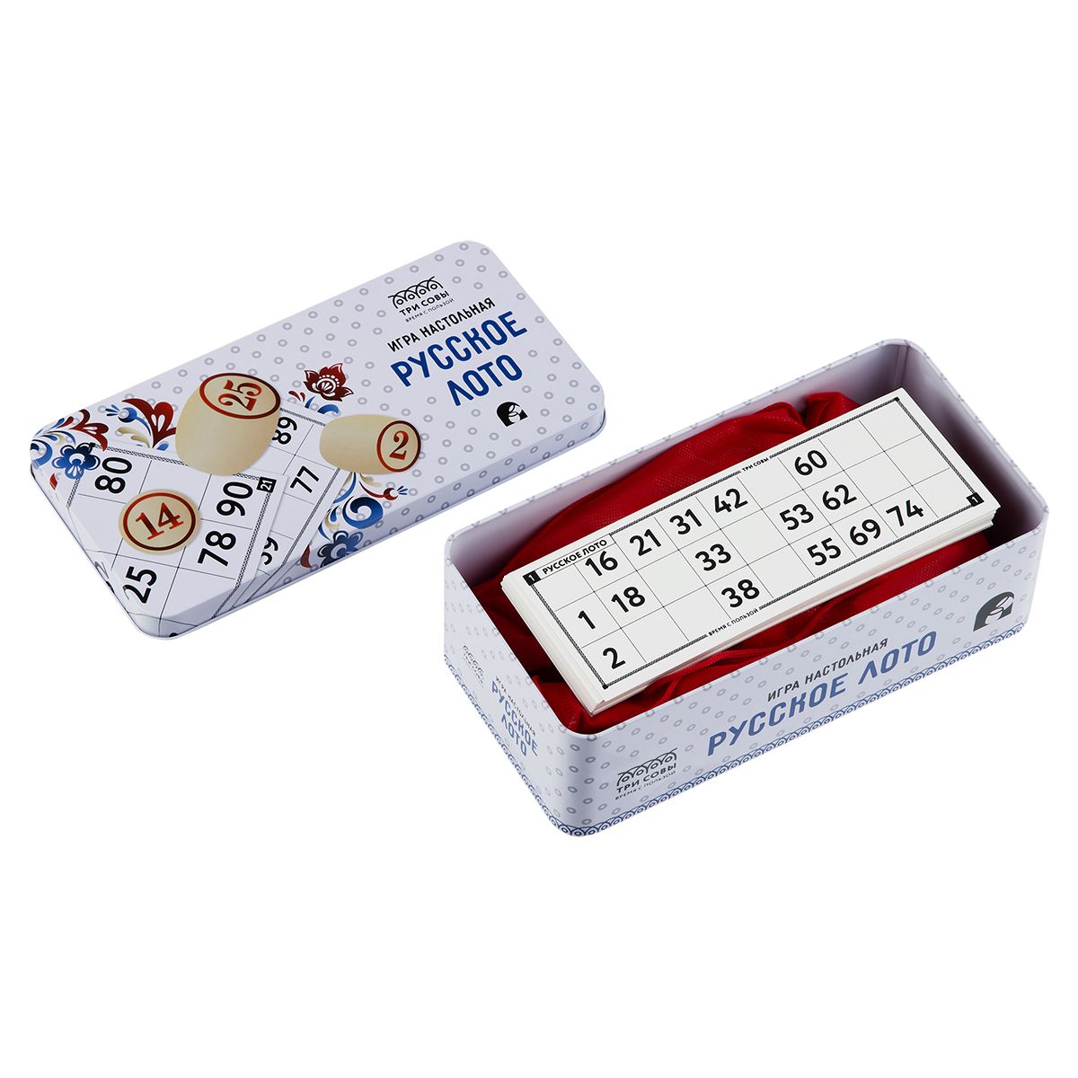 Игра настольная ТРИ СОВЫ "Русское лото", с бочонками, металлическая коробка