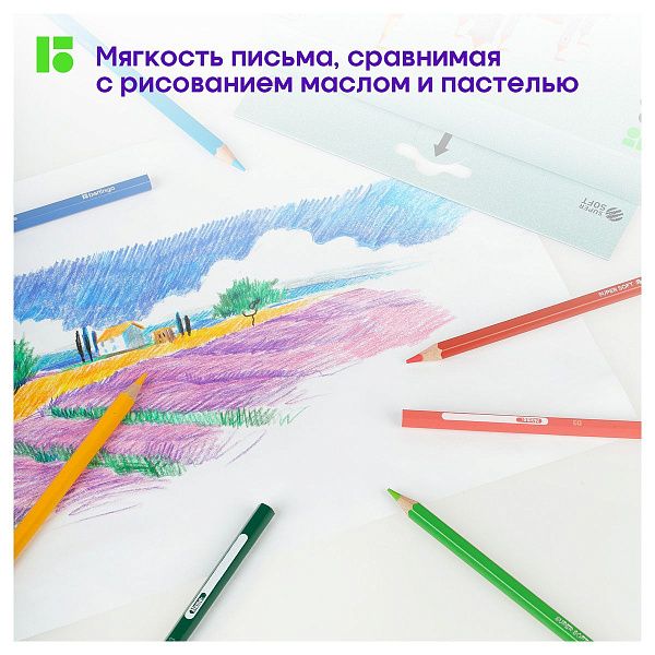 - Мягкий грифель с высокой концентрацией пигмента, легко ложится на бумагу.