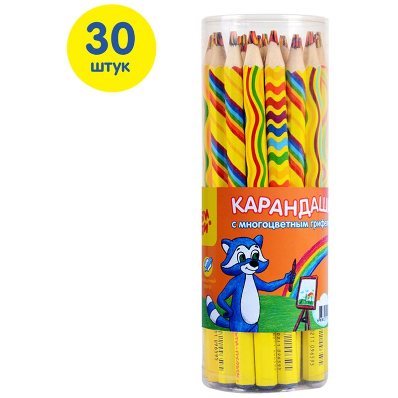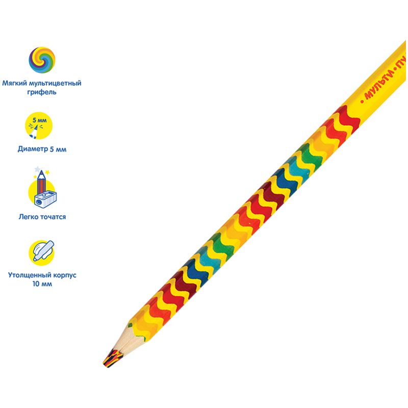 Карандаш с многоцветным грифелем Мульти-Пульти "Енот и радуга", утолщенный, заточен.