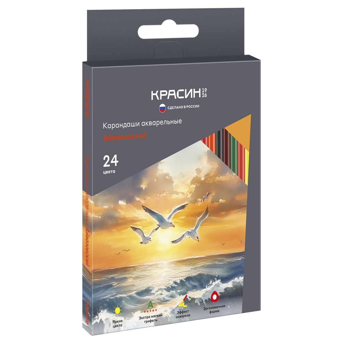 Карандаши акварельные Красин "Айвазовский", 24цв., трехгран., заточен., картон, европодвес