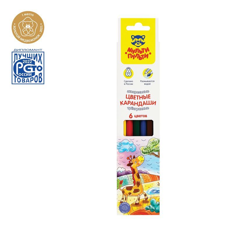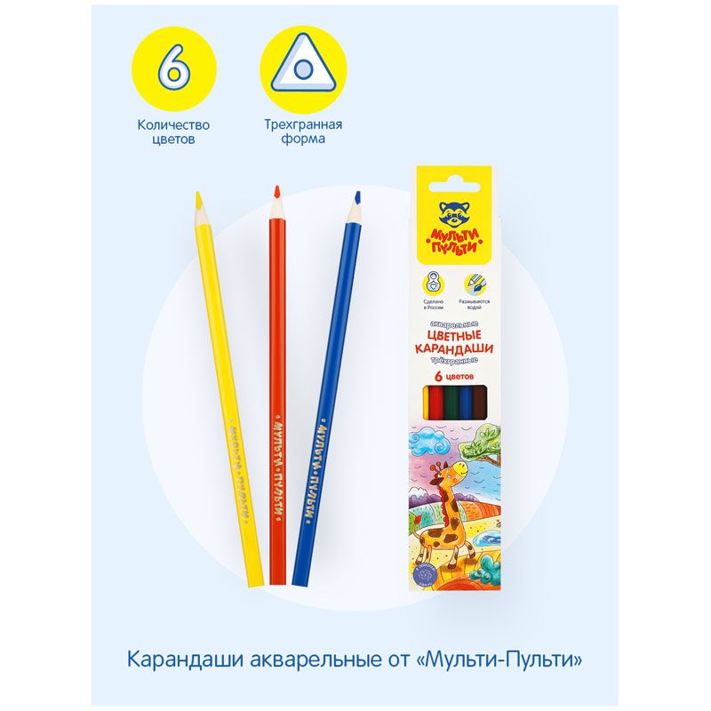 Карандаши акварельные Мульти-Пульти "Невероятные приключения", 06цв., трехгран., заточен., картон, европодвес