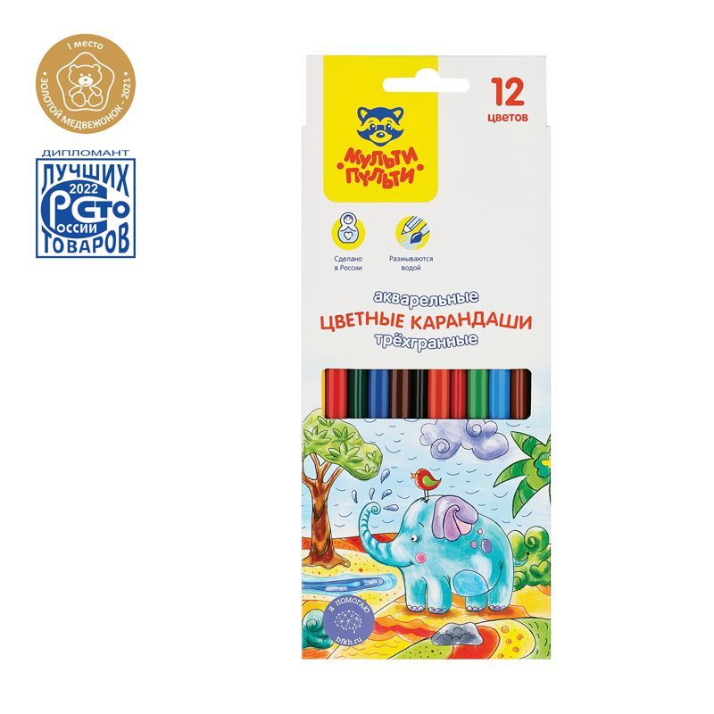 Карандаши акварельные Мульти-Пульти "Невероятные приключения", 12цв., трехгран., заточен., картон, европодвес