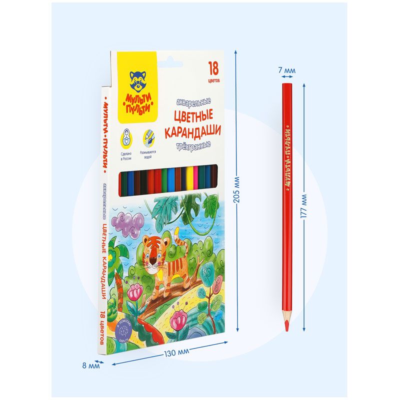 Карандаши акварельные Мульти-Пульти "Невероятные приключения", 18цв., трехгран., заточен., картон, европодвес