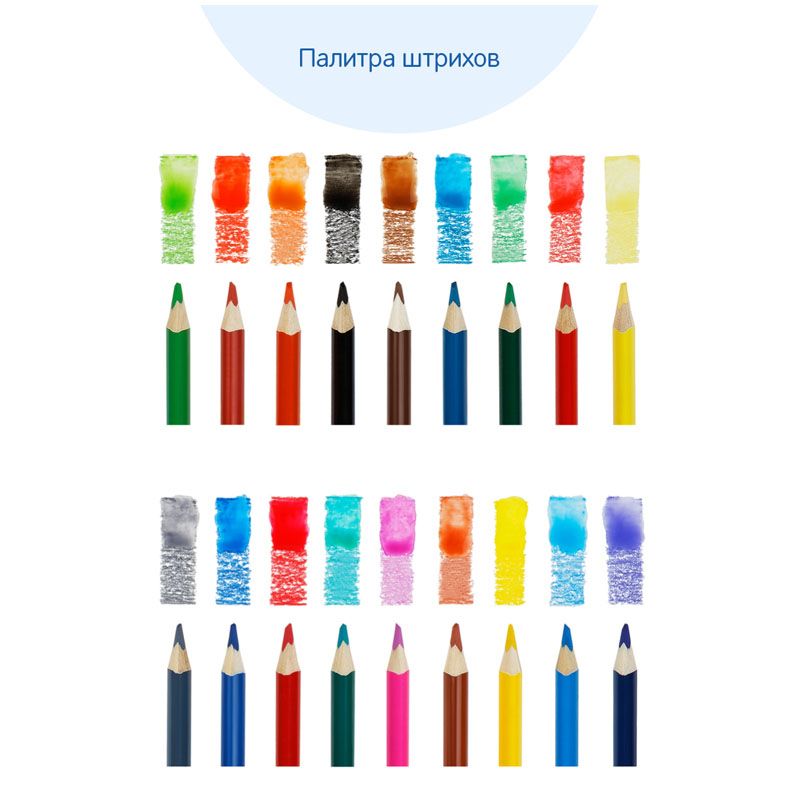 Корпус сделан из отборного дерева – липы, поэтому легко затачивается. Его эргономичная трёхгранная форма способствует правильному захвату даже маленькой детской рукой. Грифель – сердце карандаша, изготовлен из высококачественных пигментов. Благодаря его мягкости карандаш оставляет яркий и насыщенный след при незначительном нажиме. Рисовать карандашами легко и приятно, а процесс принесёт действительно огромное удовольствие!