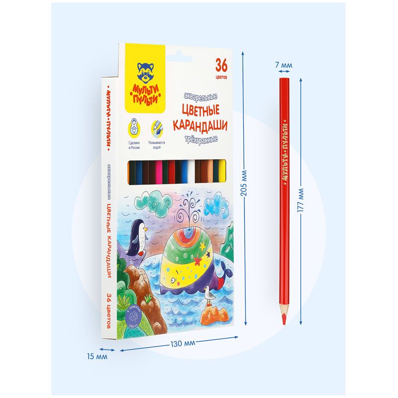 Карандаши акварельные Мульти-Пульти "Невероятные приключения", 36цв., трехгран., заточен., картон, европодвес