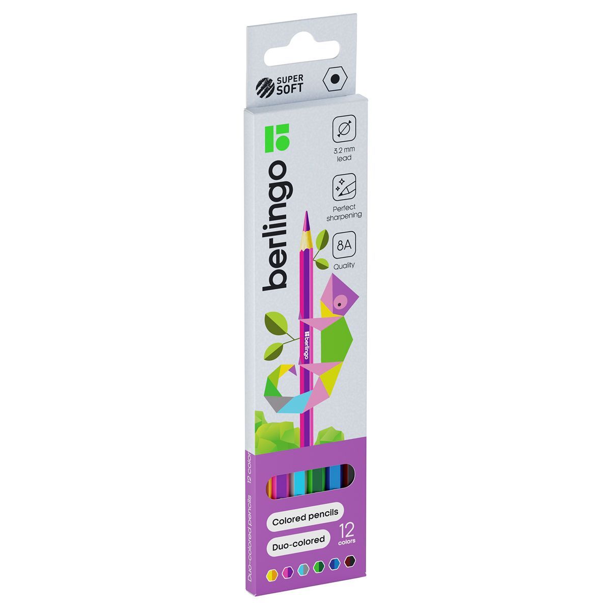 Карандаши с двухцветным грифелем Berlingo "SuperSoft. 2in1", 06шт., 12цв., картон., европодвес