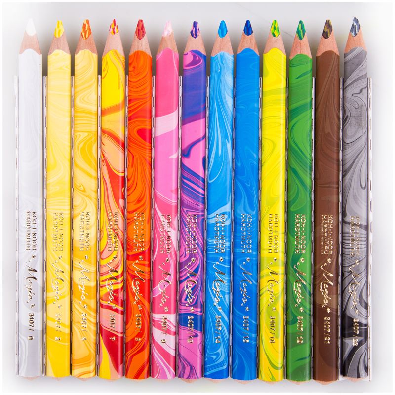 Карандаши с многоцветным грифелем Koh-I-Noor "Magic", 12цв.+ карандаш-блендер, утолщенные, заточен., картон, европодвес