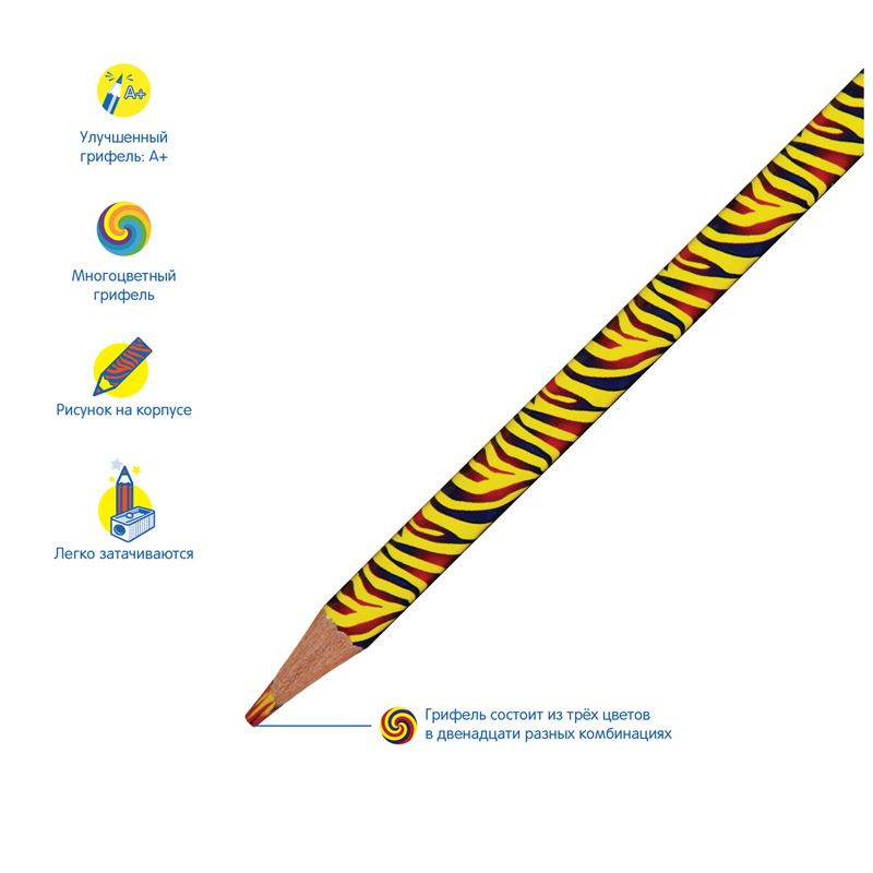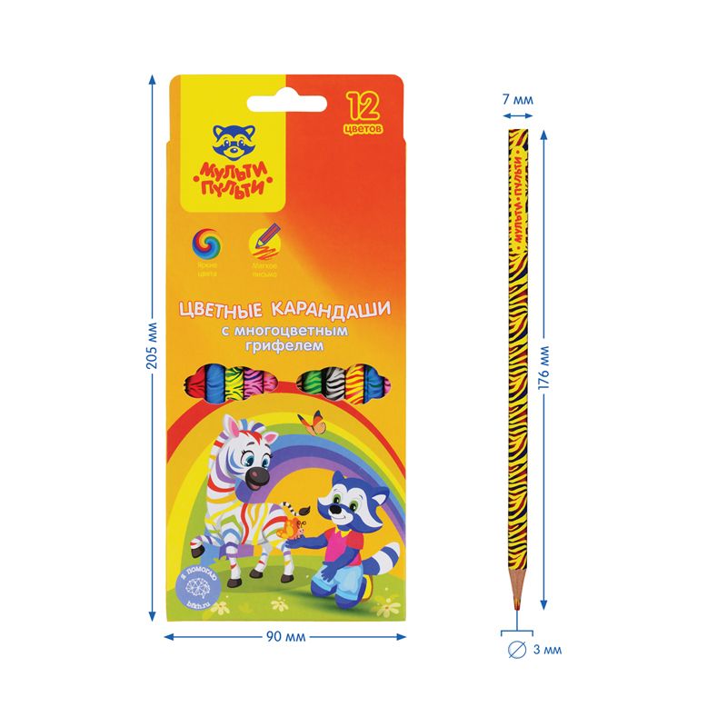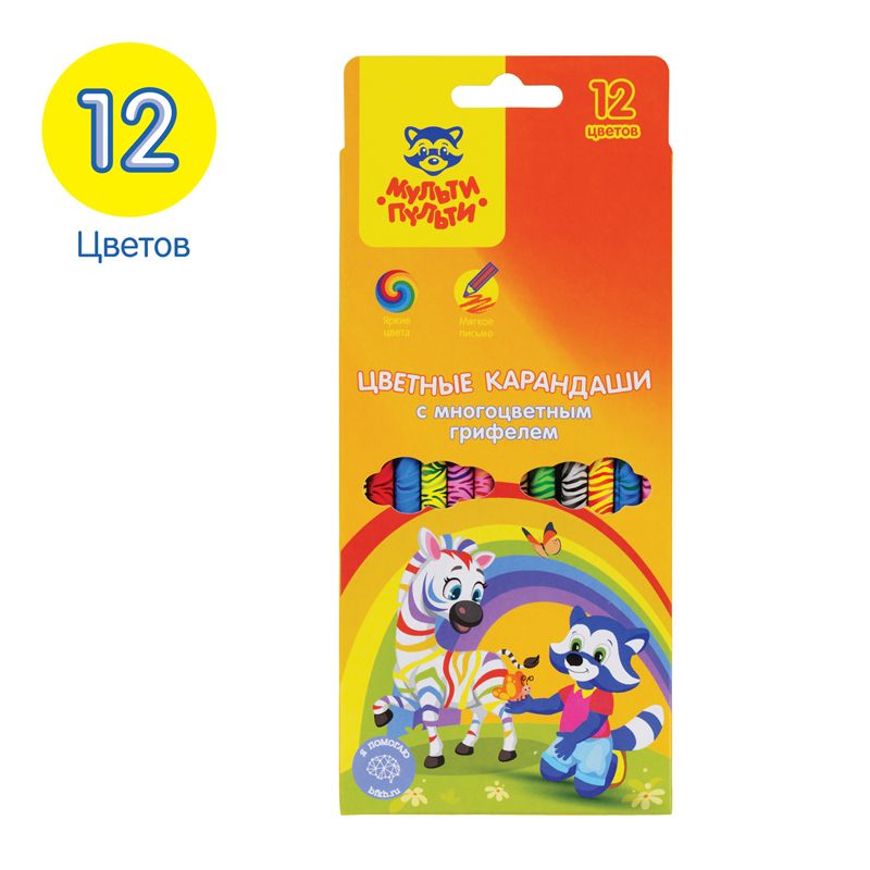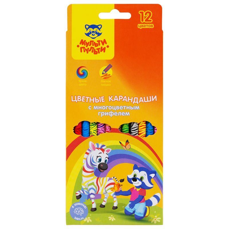 Карандаши с многоцветным грифелем Мульти-Пульти "Енот и радуга", 12цв., заточен., европодвес
