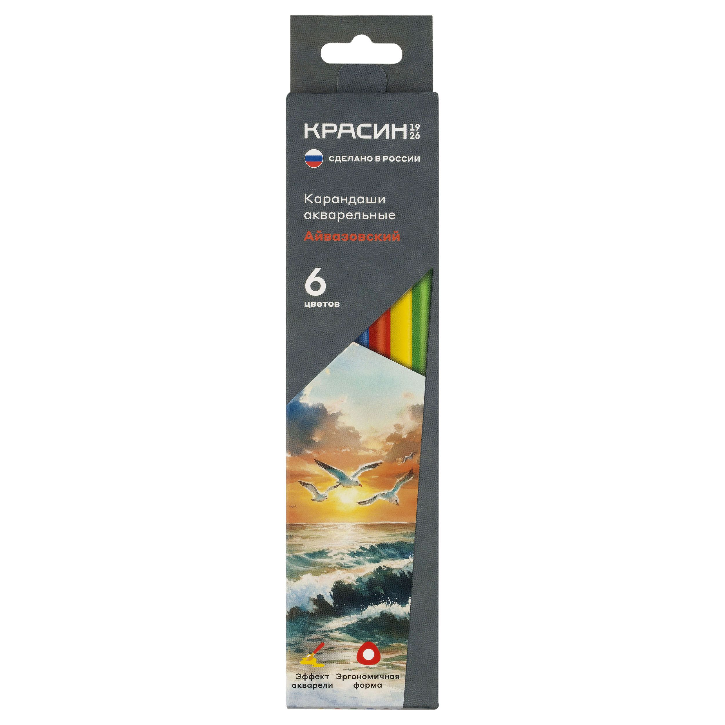 Карандаши акварельные Красин "Айвазовский", 06цв., трехгран., заточен., картон, европодвес