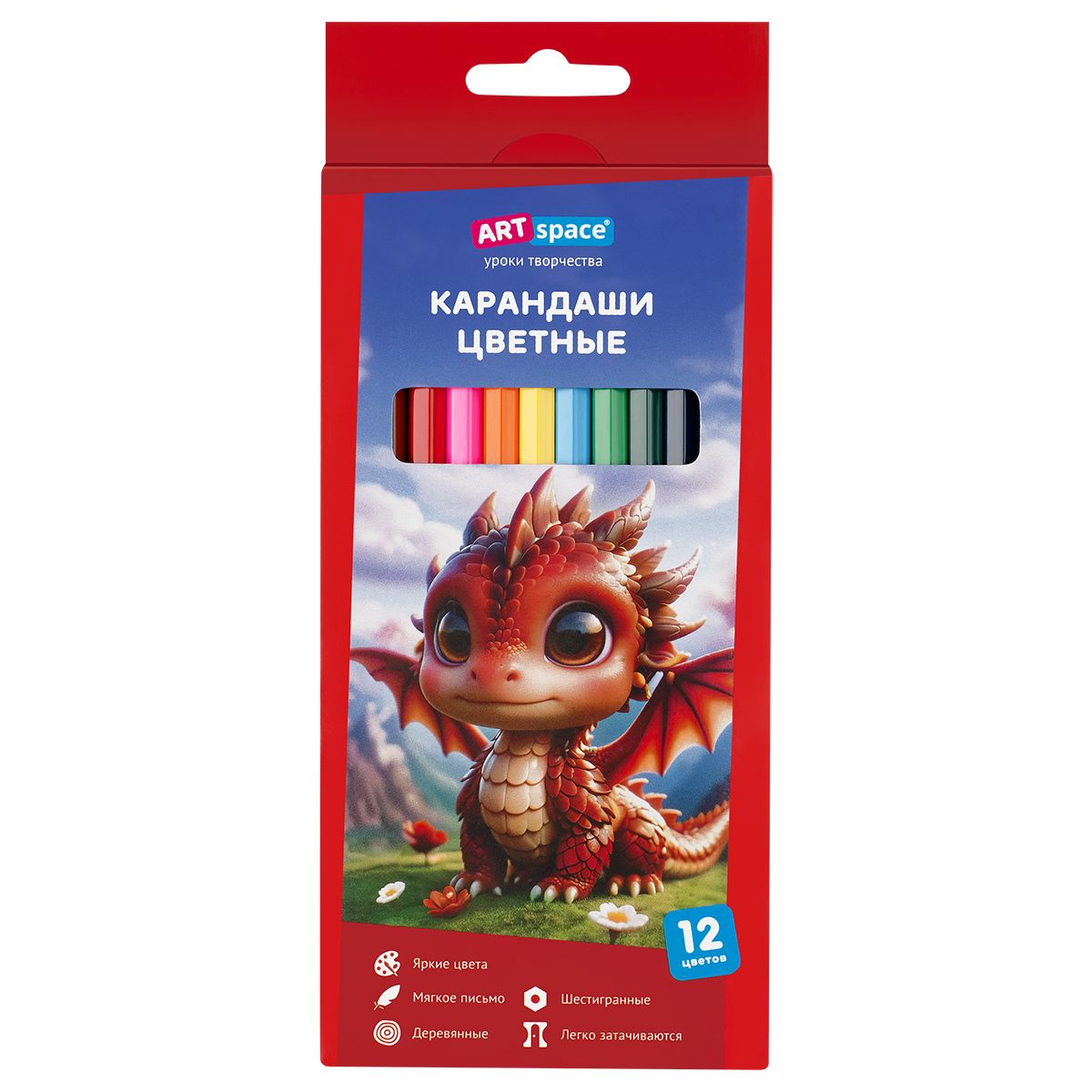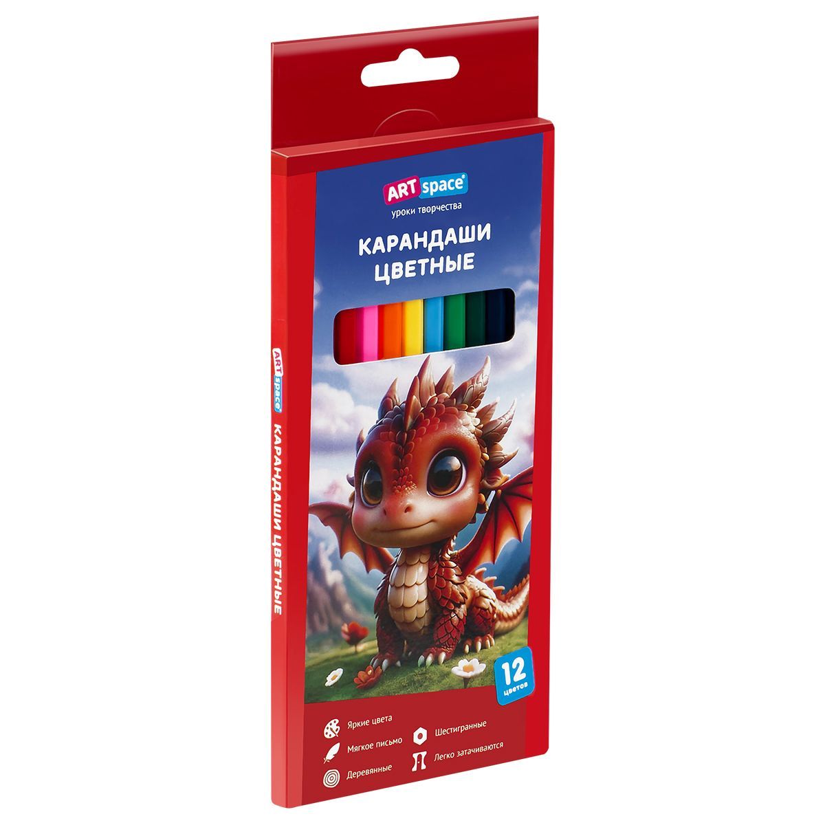 Карандаши цветные ArtSpace "Дракоша", 12цв., шестигранные, заточен., картон. упак., европодвес