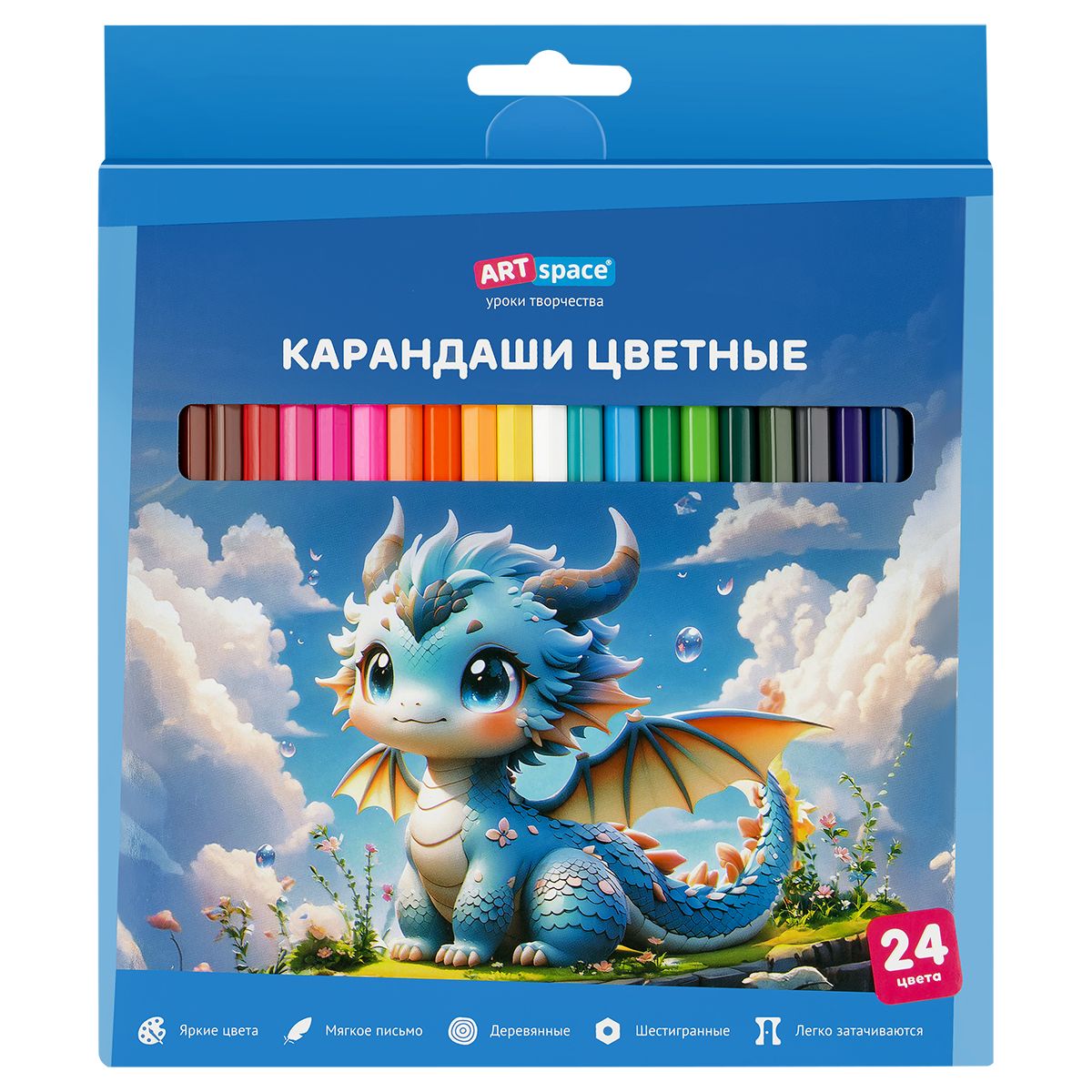 Карандаши цветные ArtSpace "Дракоша", 24цв., шестигранные, заточен., картон. упак., европодвес
