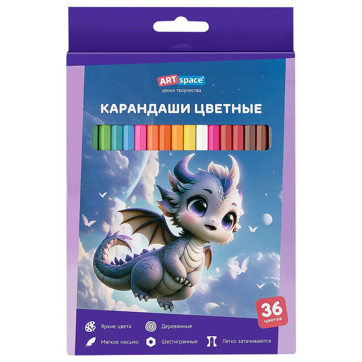 Карандаши цветные ArtSpace "Дракоша", 36цв., шестигранные, заточен., картон. упак., европодвес