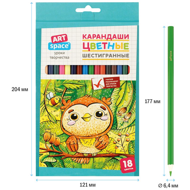 Карандаши цветные ArtSpace "Милые зверушки", 18цв., заточен., картон, европодвес