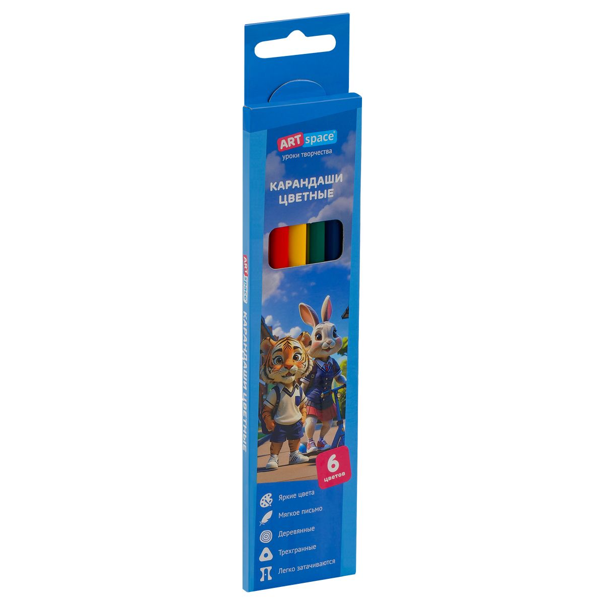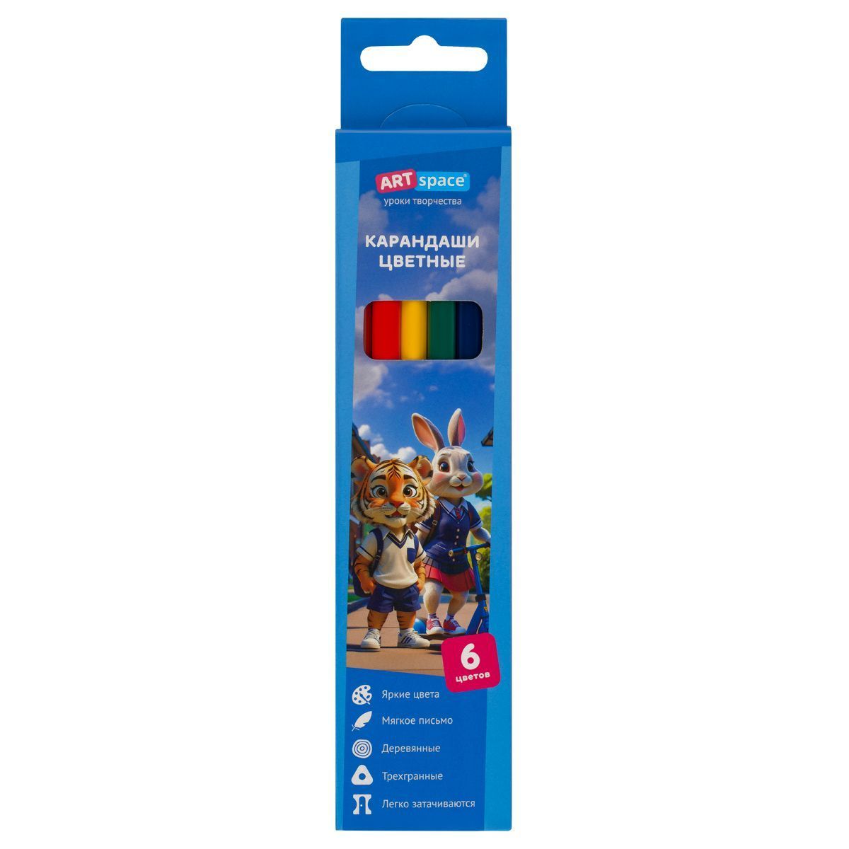 Карандаши цветные ArtSpace "School mood", 06цв., трехгранные, заточен., картон. упак., европодвес