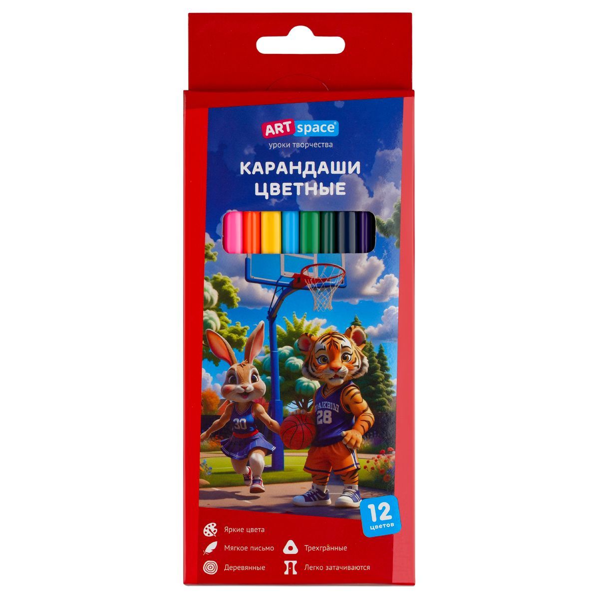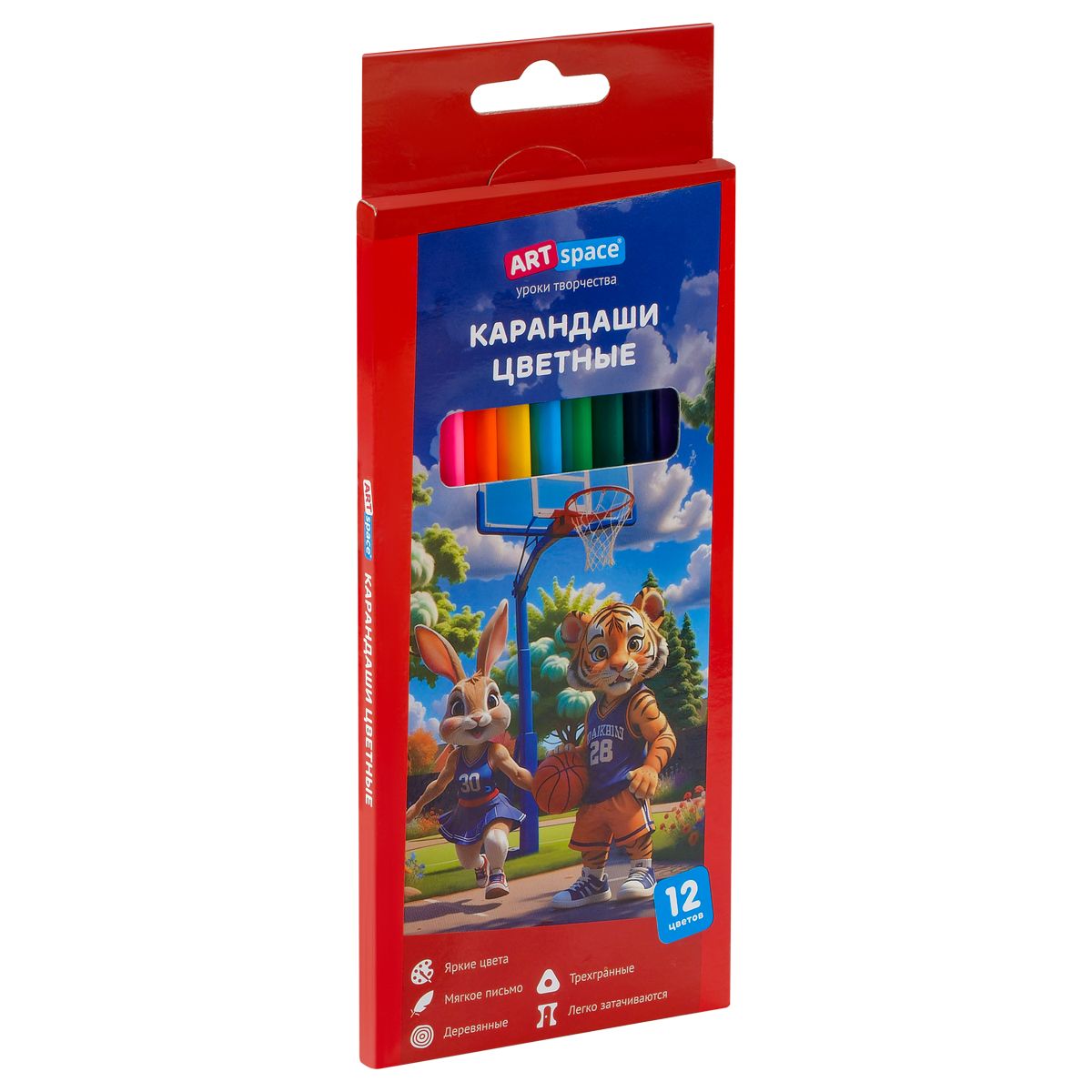 Карандаши цветные ArtSpace "School mood", 12цв., трехгранные, заточен., картон. упак., европодвес