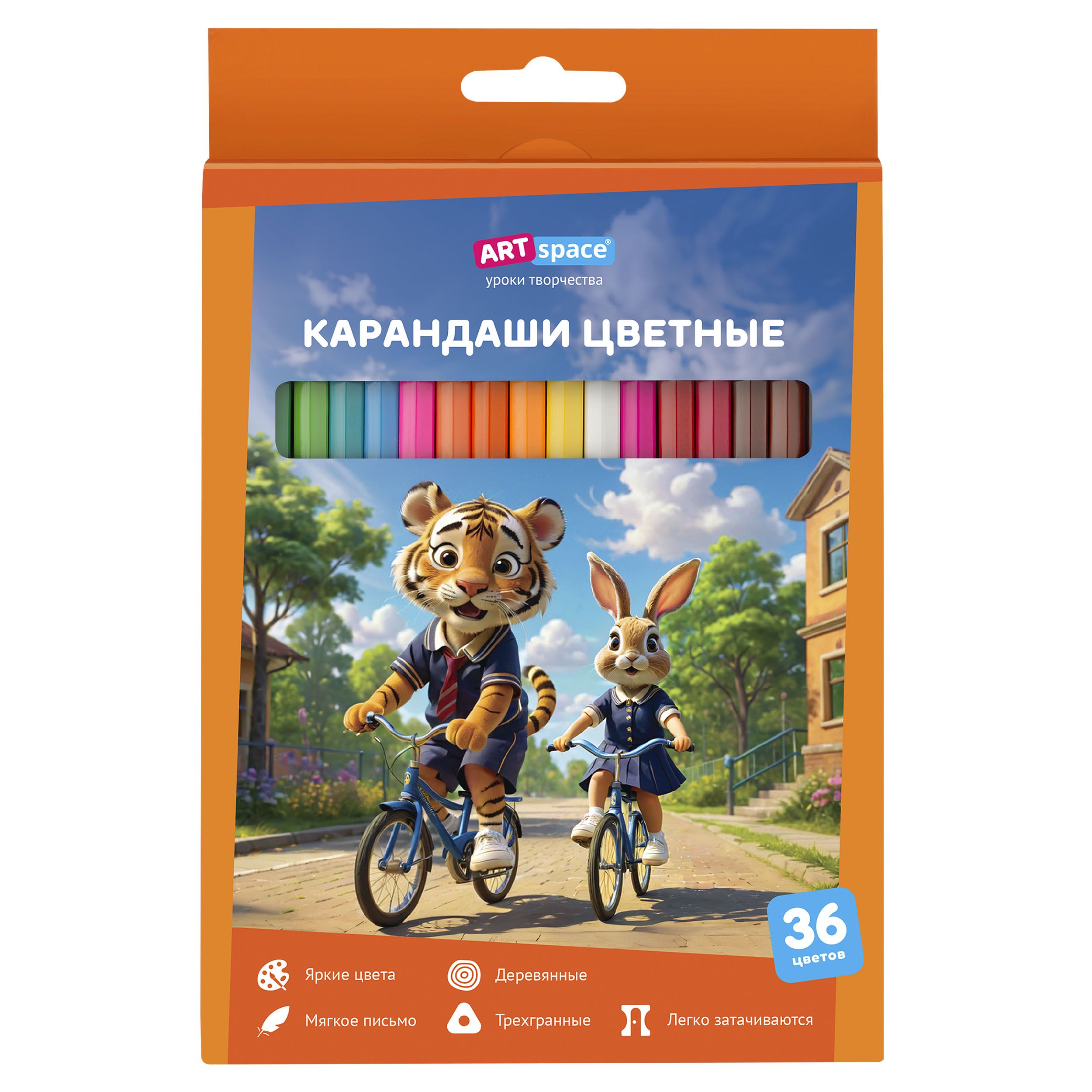 Карандаши цветные ArtSpace "School mood", 36цв., шестигранные, заточен., картон. упак., европодвес