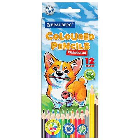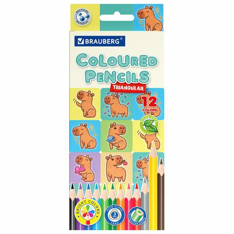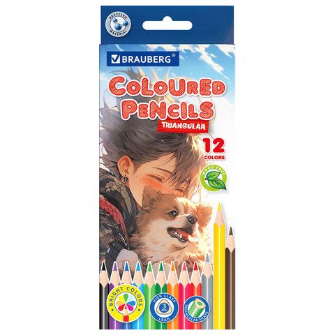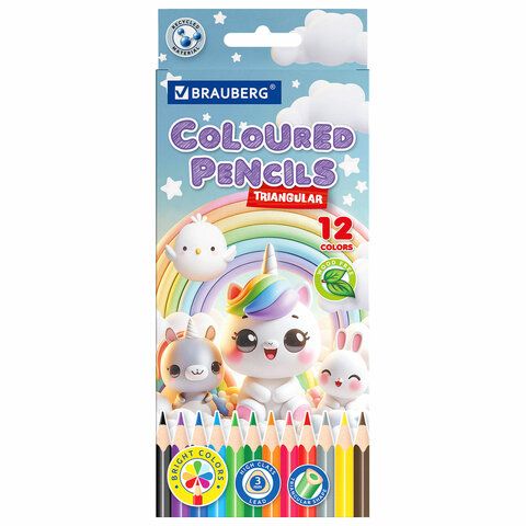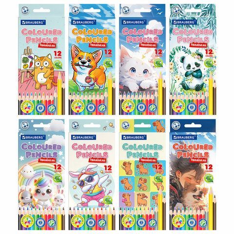Карандаши цветные "АССОРТИ 8 ДИЗАЙНОВ 3+ лет", 12 цветов, трехгранные, BRAUBERG, 182055