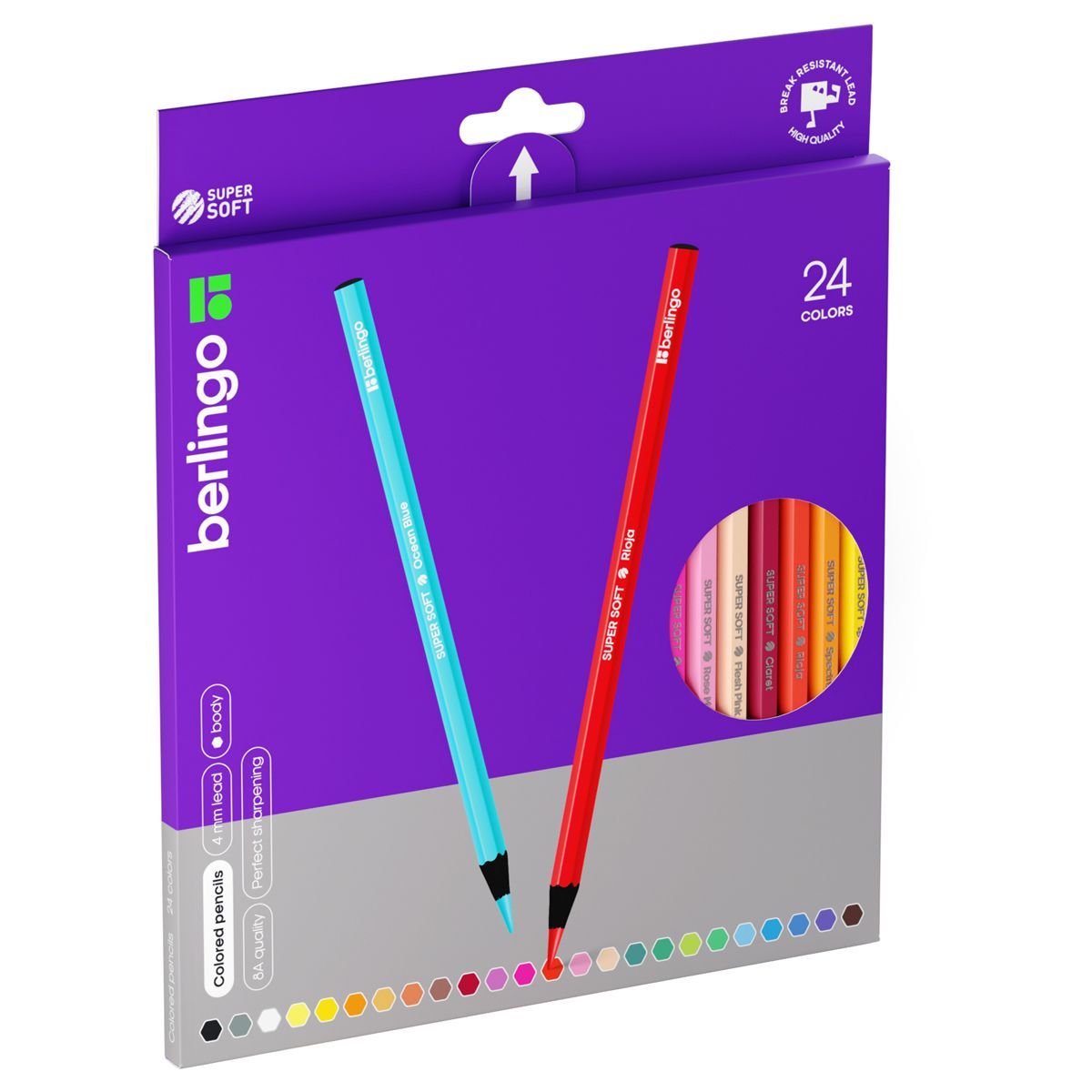 Карандаши цветные Berlingo "SuperSoft. Blackwood", 24цв., черное дерево, заточен., картон, европодве