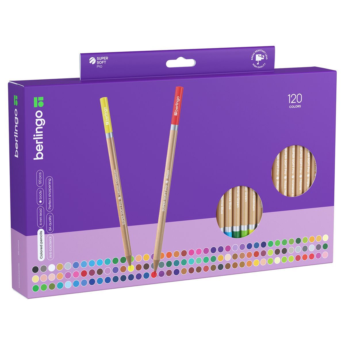 Карандаши цветные Berlingo "SuperSoft. Pro" 120цв., круглые, заточен., картон, европодвес