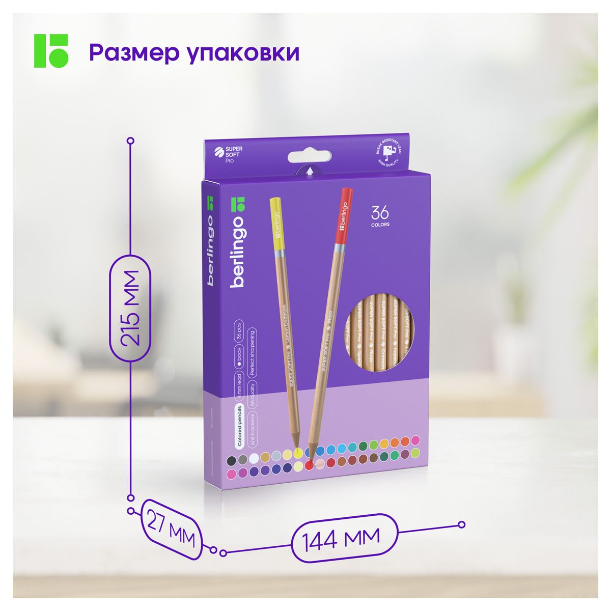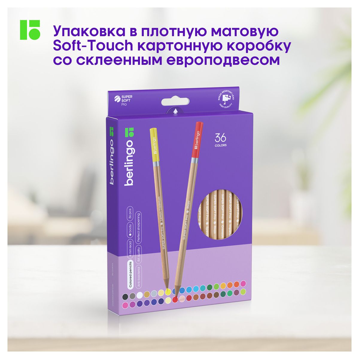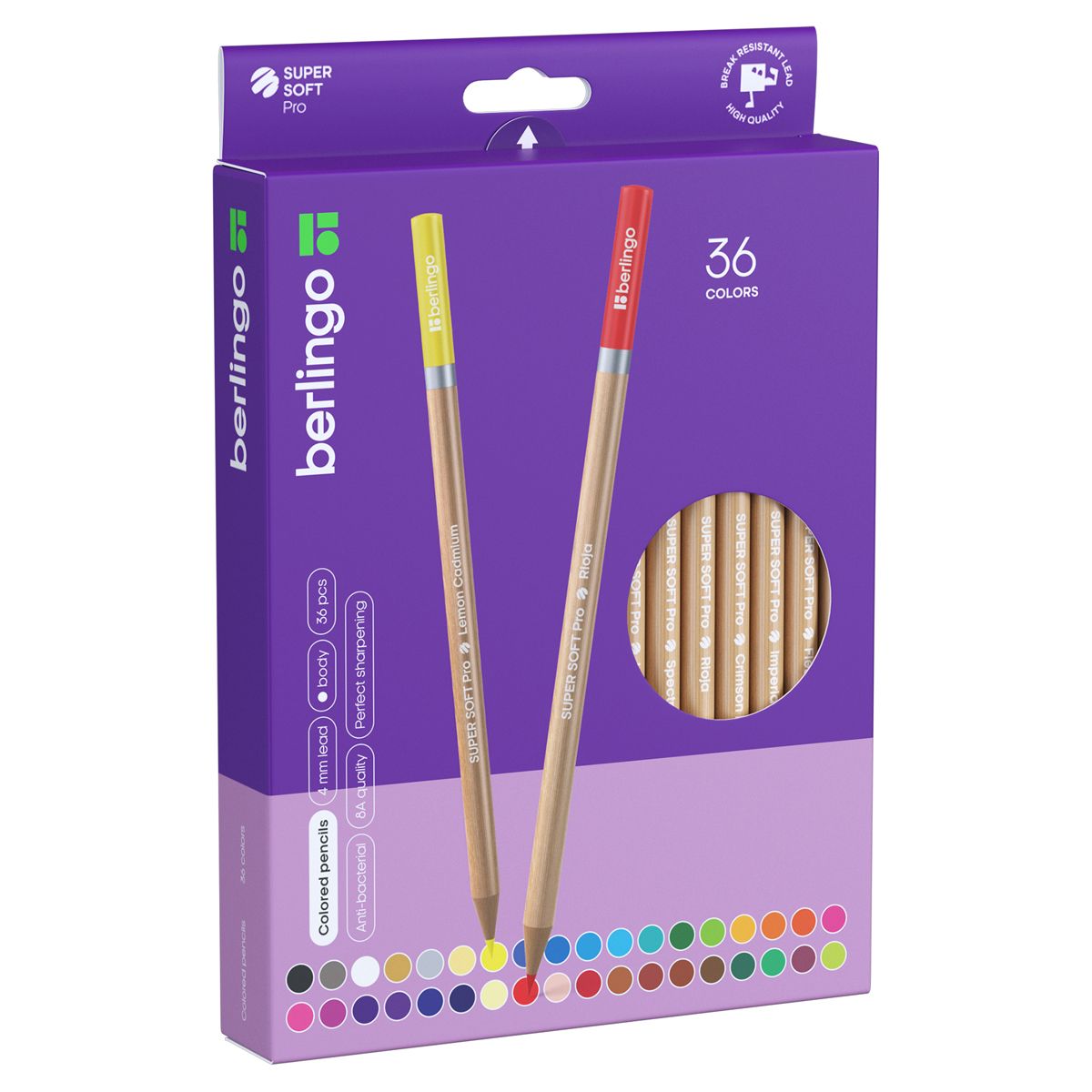 Карандаши цветные Berlingo "SuperSoft. Pro" 36цв., круглые, заточен., картон, европодвес