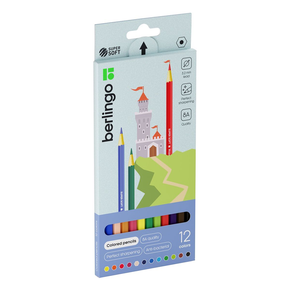 Карандаши цветные Berlingo "SuperSoft. Замки", 12цв., заточен., картон, европодвес