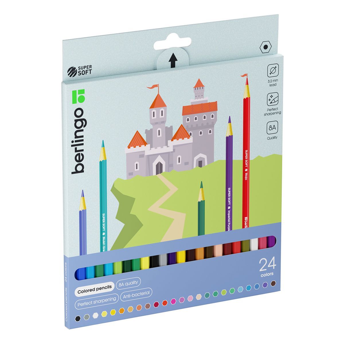 Карандаши цветные Berlingo "SuperSoft. Замки", 24цв., заточен., картон, европодвес