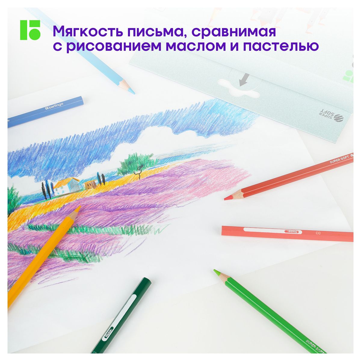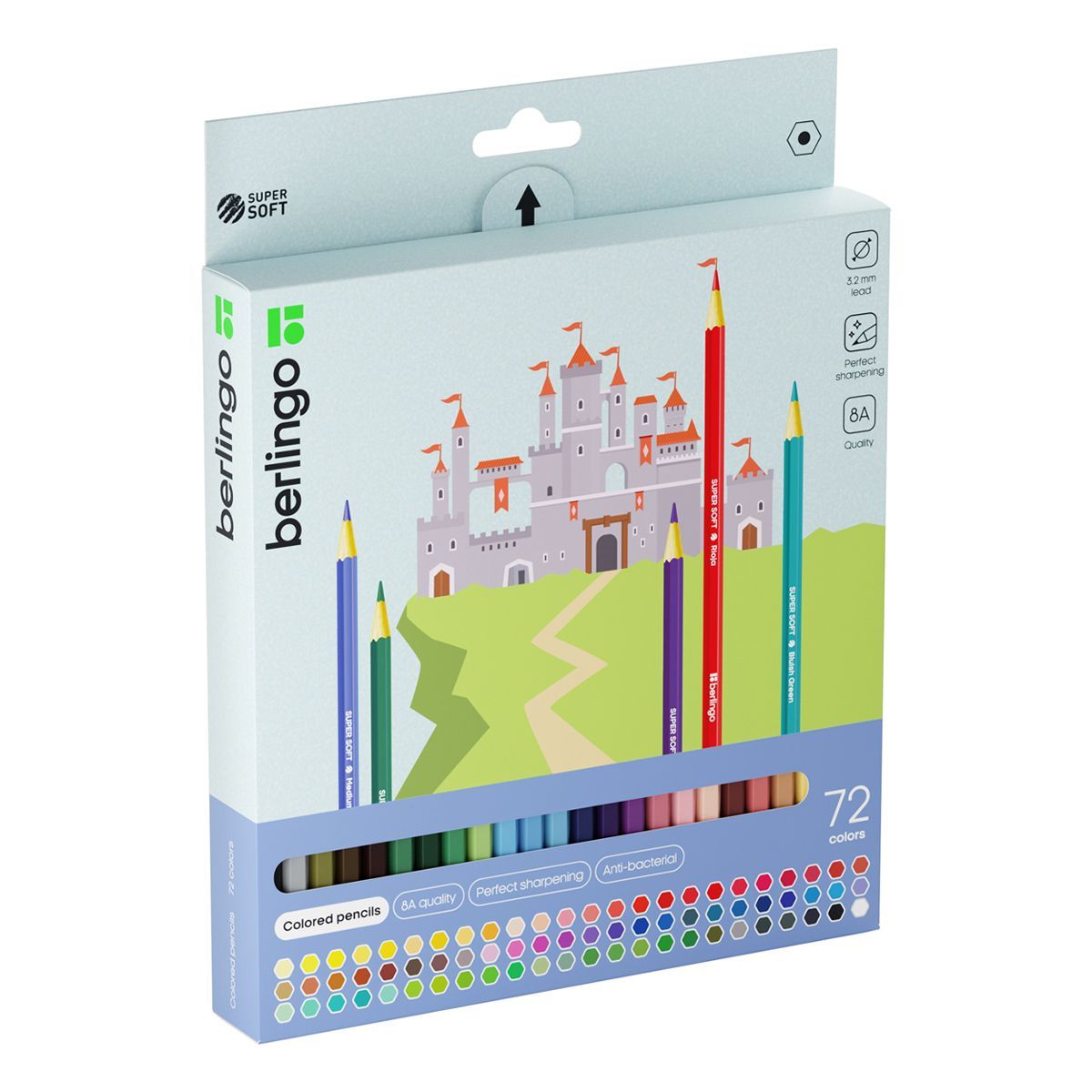 Карандаши цветные Berlingo "SuperSoft. Замки", 72цв., заточен., картон, европодвес