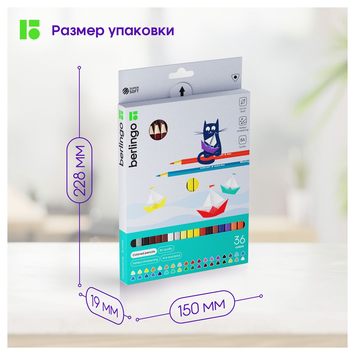 Карандаши цветные Berlingo "SuperSoft. Жил-был кот", 36цв., трехгран., заточен., картон, европодвес