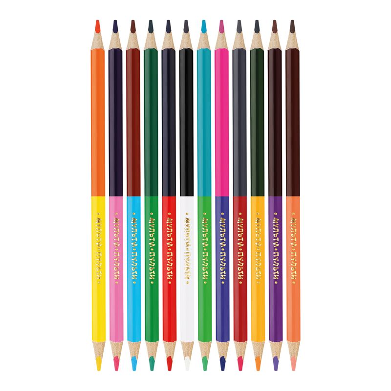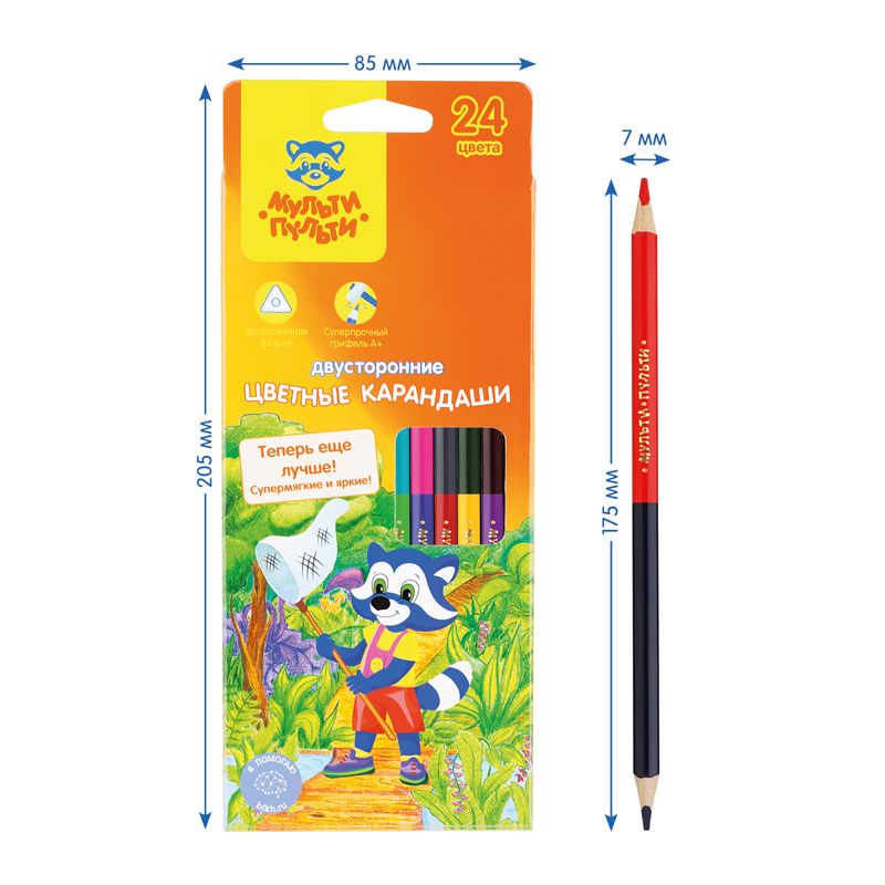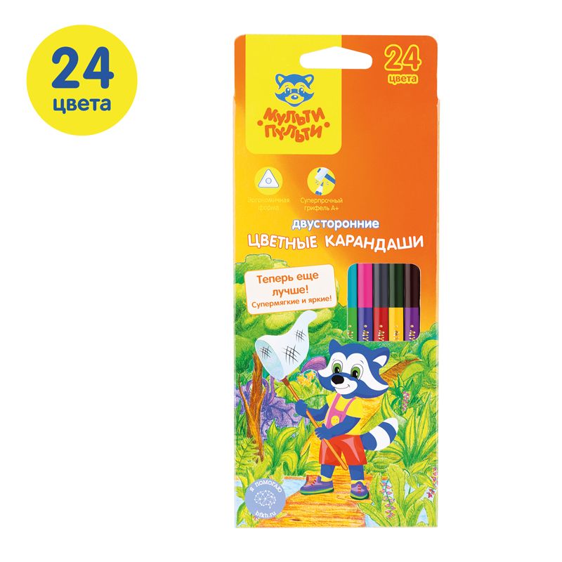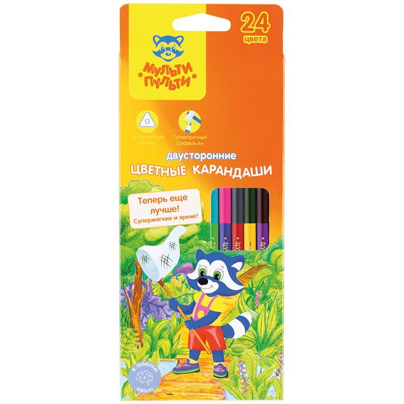 Карандаши цветные двусторонние Мульти-Пульти "Енот в тропиках", 24цв., 12шт., трехгран., заточ., картон