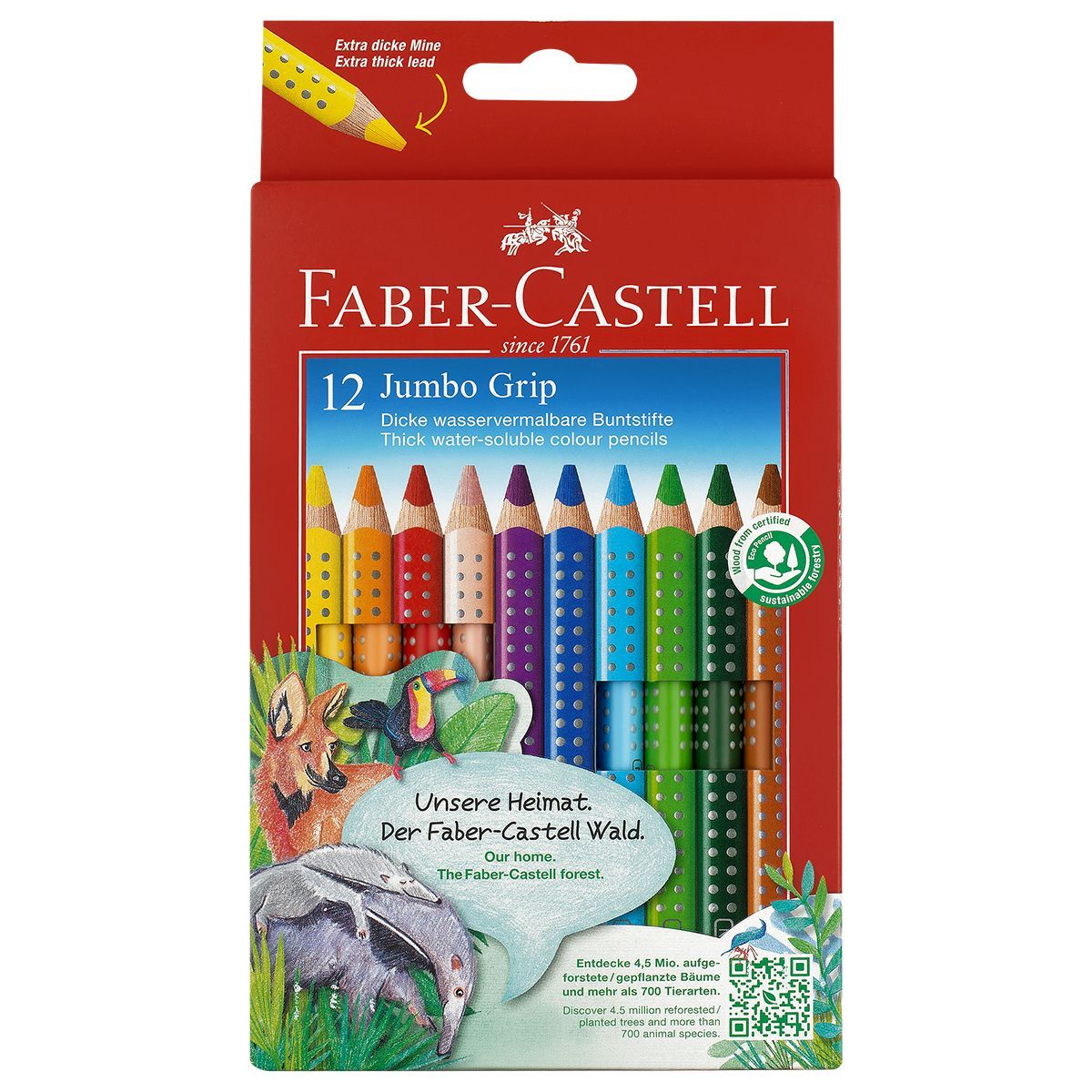 Карандаши цветные Faber-Castell "Jumbo Grip", 12цв., трехгран., утолщен., заточен., картон, европодв